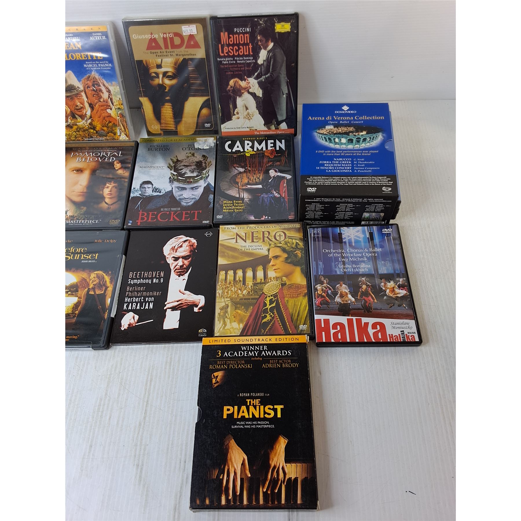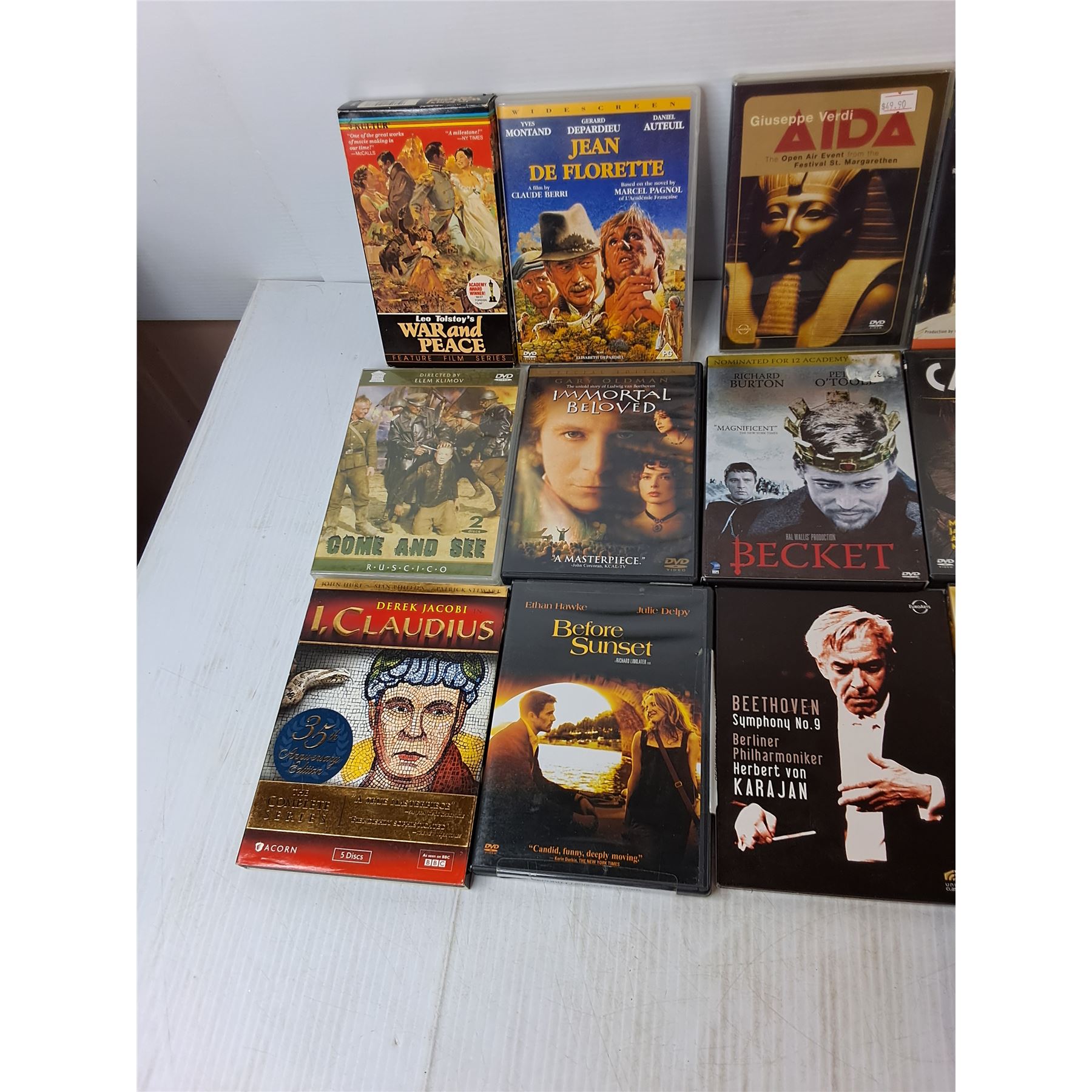 (15) DVDs/VHS- War and Peace, Nero, Operas, Misc.