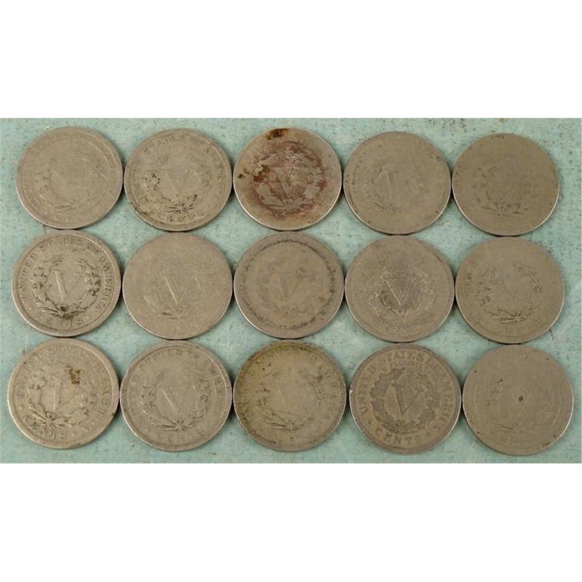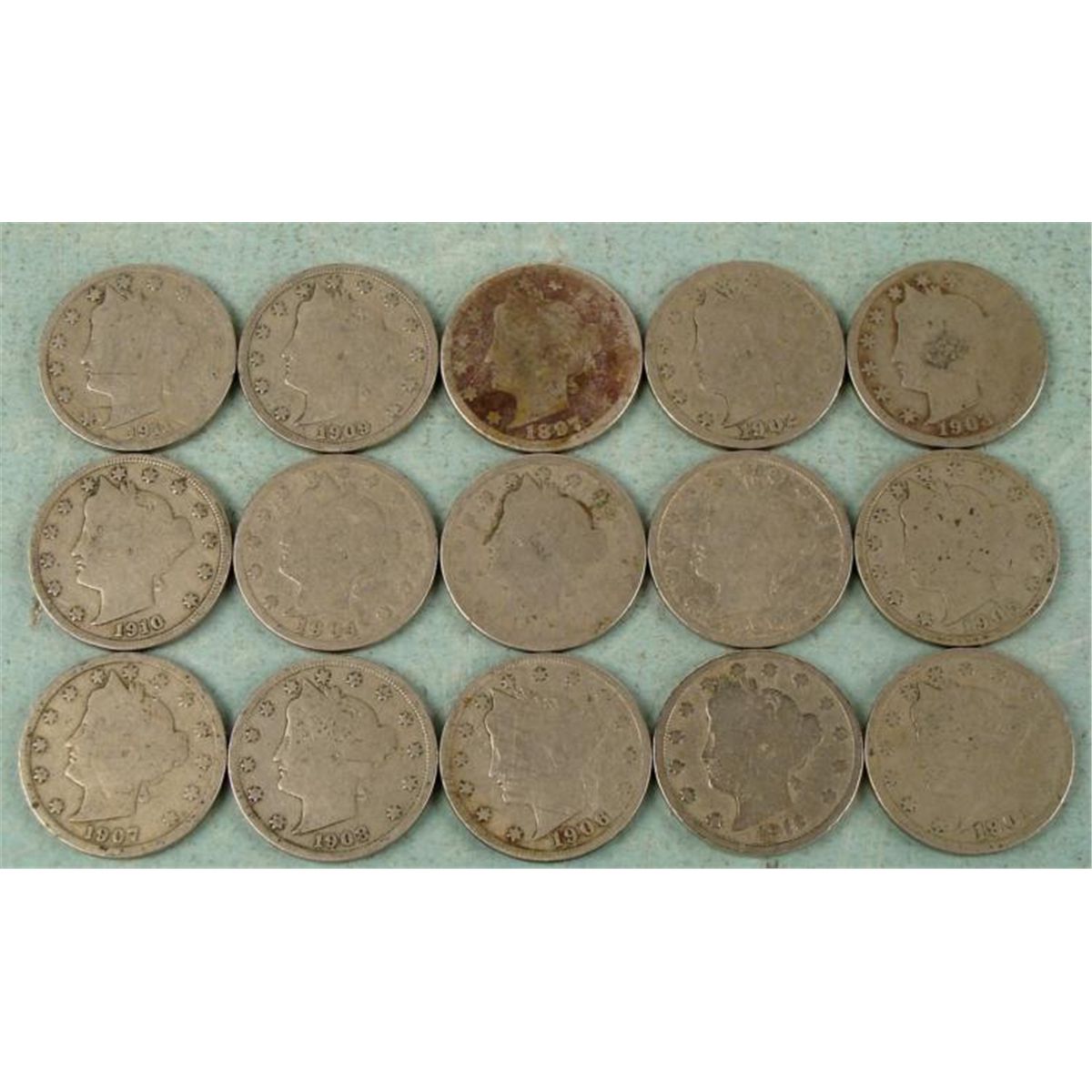 15 Different Date V Nickels Condition: Average CirculatedDates: 1897 99, 1900, 01, 02, 03, 04, 05, 06, 07, 08, 09, 10, 11, 12