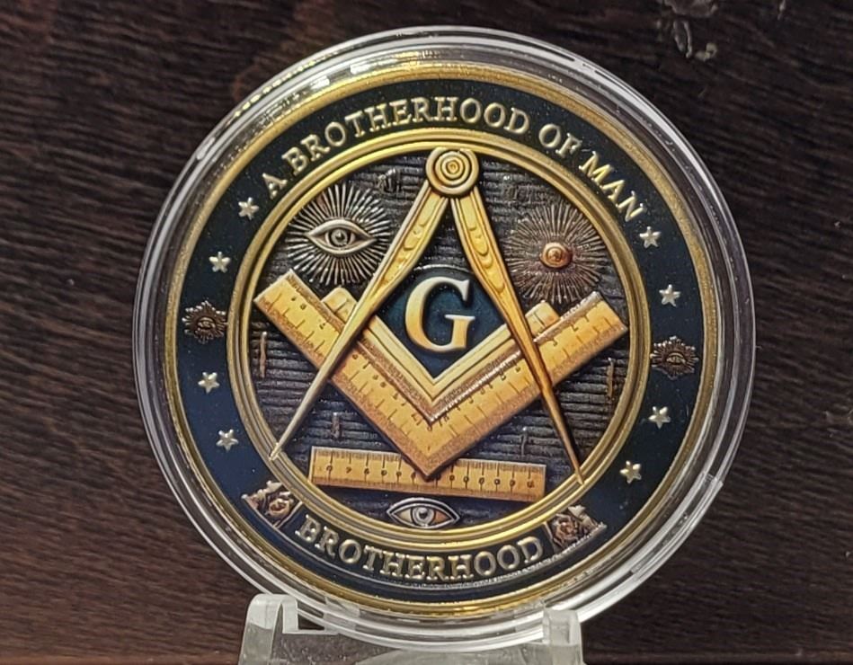 YELLOW ENAMEL FREE MASONS TOKEN. COLLECTIBLES