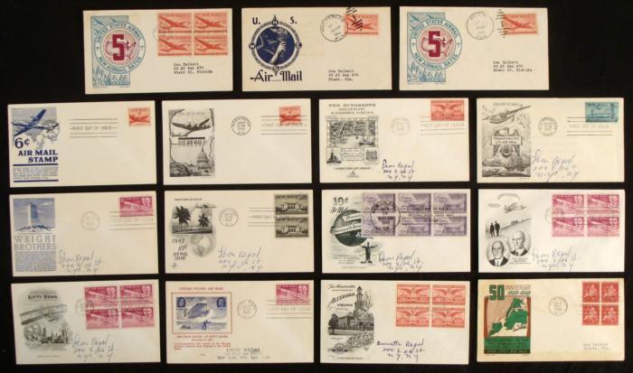 These 15 first day covers all commemorate Air Mail service and flight. There are some nice cachets, including the Wright Brothers, Trans-Pacific, New Airmail Rates, and others. They are post marked from 1946-1949. Their condition is good to very good.