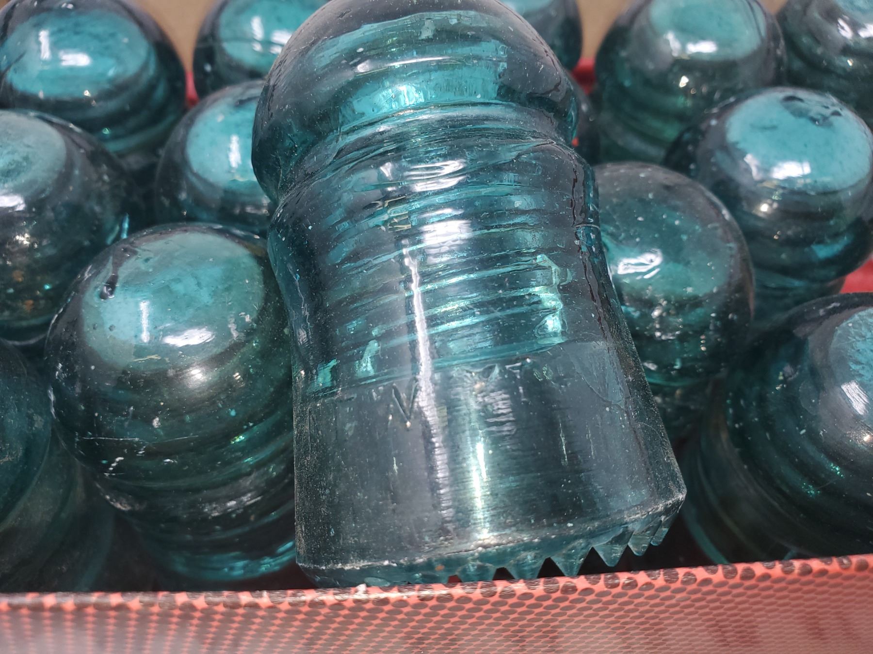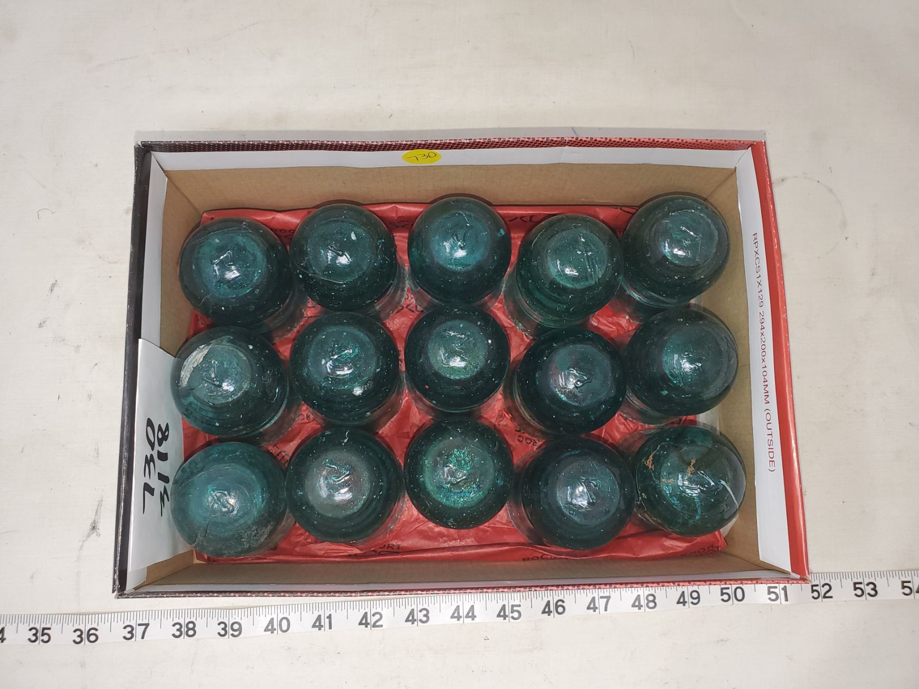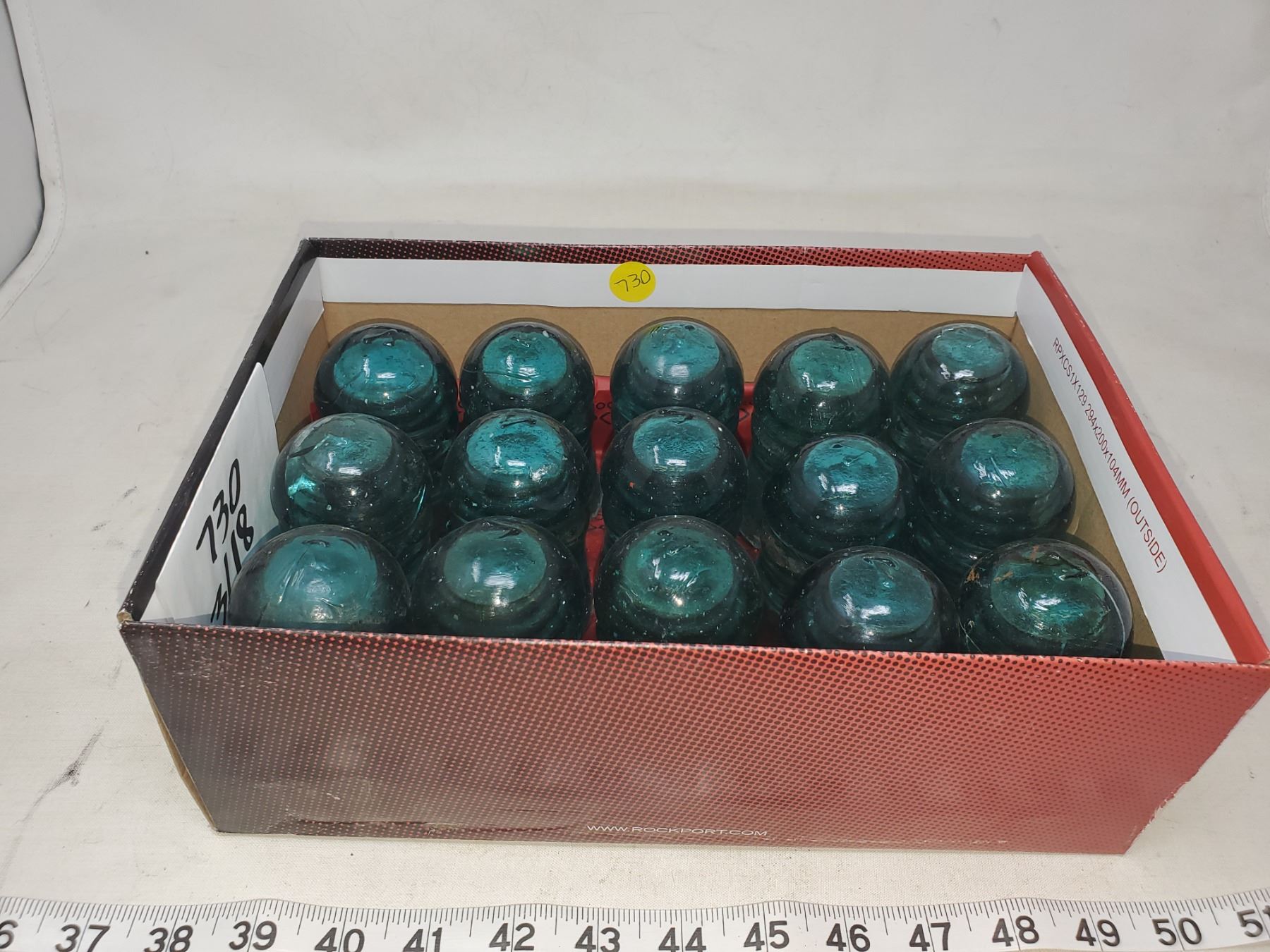 15 GREEN GLASS INSULATORS 'NEW YORK, BROOKFIELD'