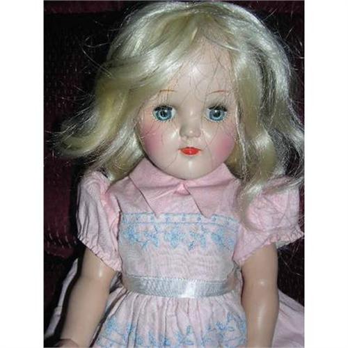 15" IDEAL Toni P91 Original Dress Blonde Doll. Doll has no tag on dress, and replaced panties. Dress has white attached cotton slip with lace trim and I see one brown spot. The sleeves need elastic thread. One side of the waist ribbon has apparently been caught in a stand is torn slightly. Doll comes from a smoke free environment. Buyer to pay $15 for shipping, handling, and insurance. Thanks for viewing.