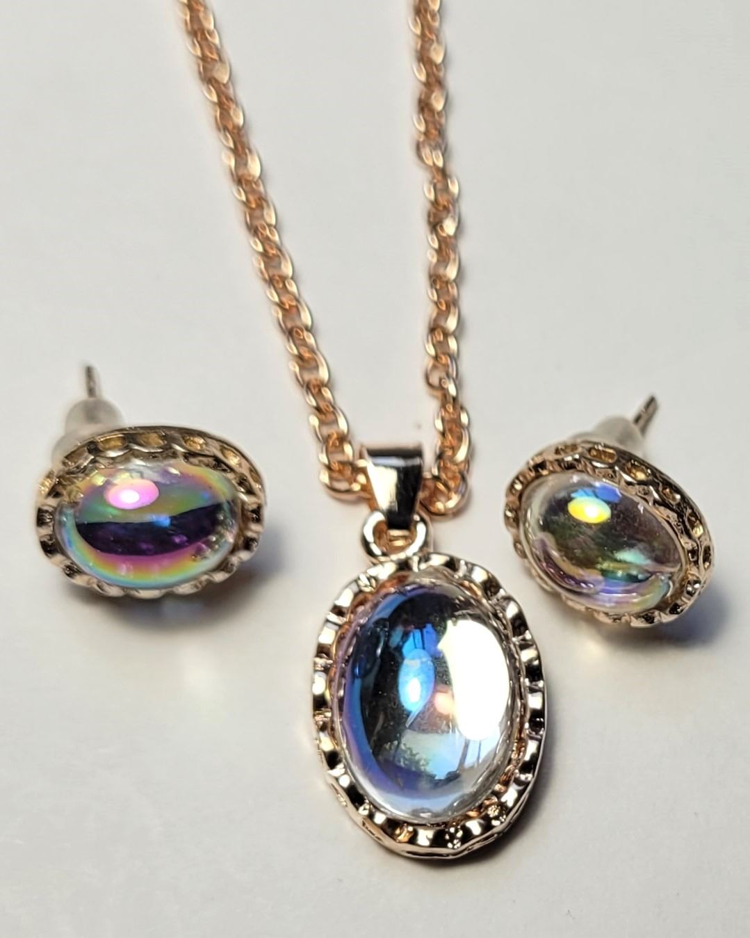 MATCHING STUD EARRINGS, ALL SET IN ROSE GOLD COLOR