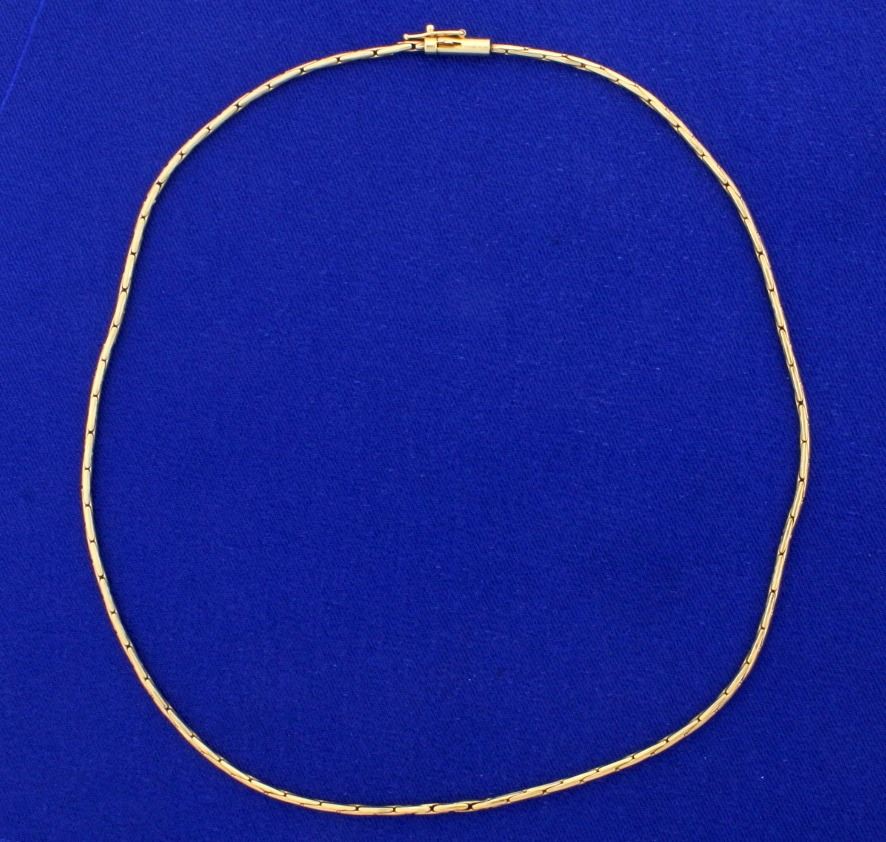 In 14k yellow gold. 1.6mm wide, with safety clasp. 8.3g.