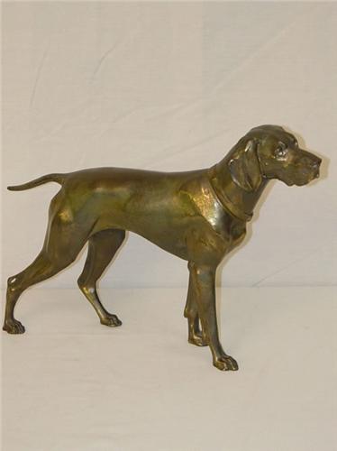 15" JENNINGS BROS. PATINATED METAL DOG (POINTER) SIGNED J.B. 2568 - SOME FINISH WEAR
