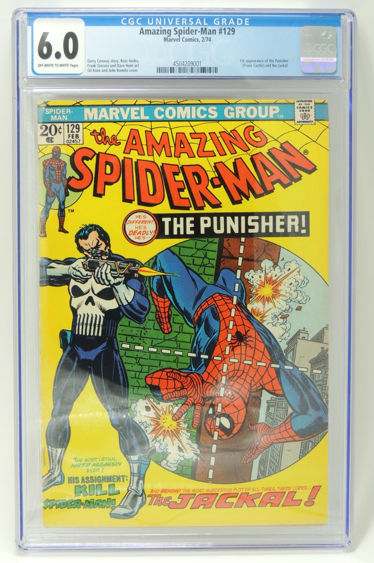 1ST APPEARANCE OF THE PUNISHER CGC UNIVERSAL GRADE 6 CGC 6 FEBRUARY 1974 MARVEL COMIC BOOK ASM AMAZING SPIDER-MAN SPIDERMAN SPIDER MAN