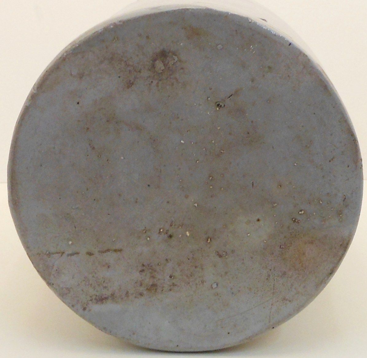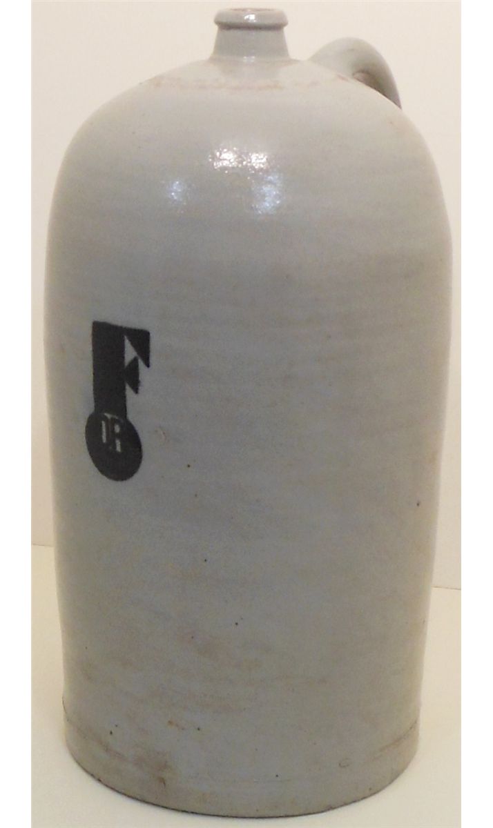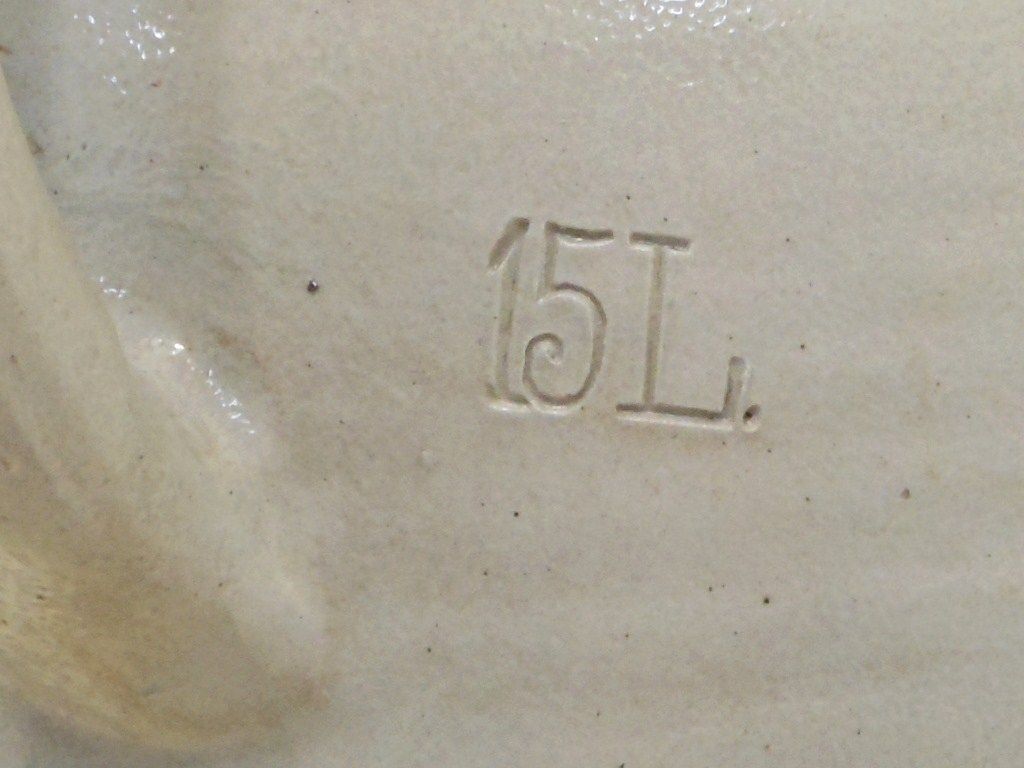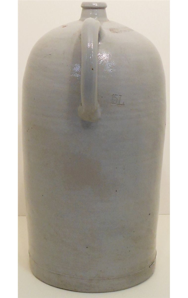 19" Tall and 9 1/2" in Diameter. 15 Litre Tall Stoneware Jug. Zinc Glazed. Marked in Block Decoration " F DR". (We are not sure what the markings stand for). Great Condition with a surface crack to the right of the markings. (see pictures)