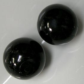 PAIR OF HAWAIIAN BLACK CORAL BEAD. THEY MEASURE 15 MM DIAMETER. HALF DRILLED