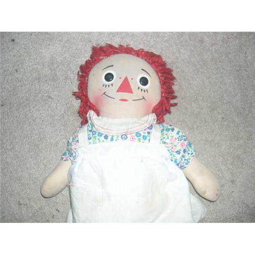 15" Musical Raggedy Ann. I don't know if the music box has been replaced but the seam has additional stitches. The music box works. There is some soil to doll. Doll comes from a smoke free environment. Buyer to pay $10 for shipping, handling, and insurance. Thanks for viewing.