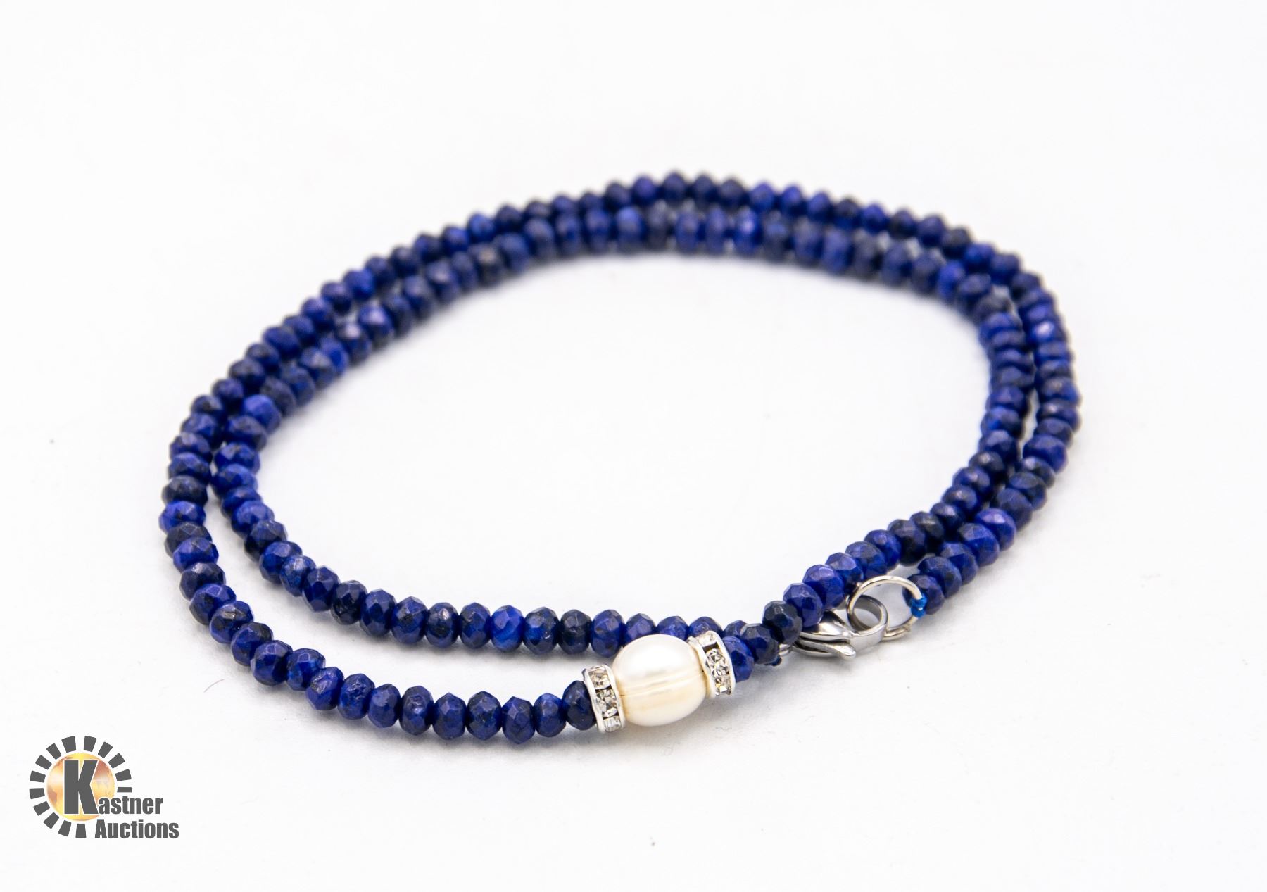 #15- NATURAL DARK BLUE JADE ,PEARL NECKLACE 18"