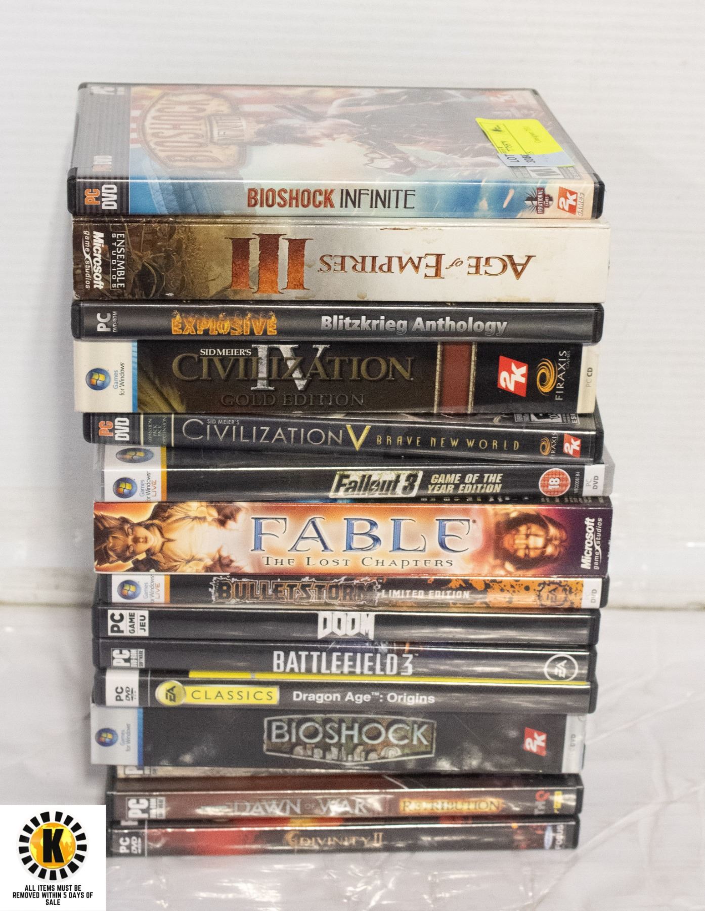 -All items need to be picked up within 5 days of purchase.