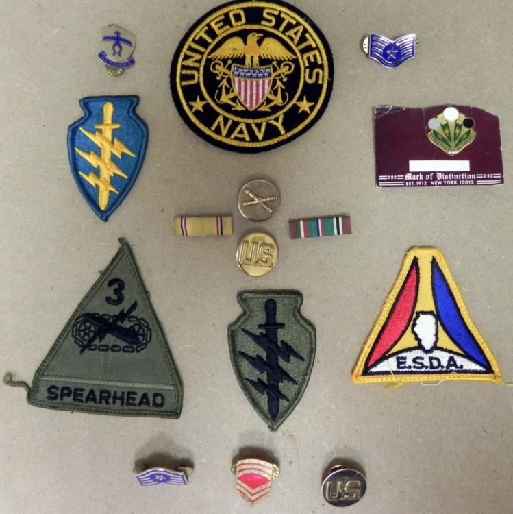 15 PC MILITARY COLLECTION-WWII-CURRENT-PATCHES, DEVICES