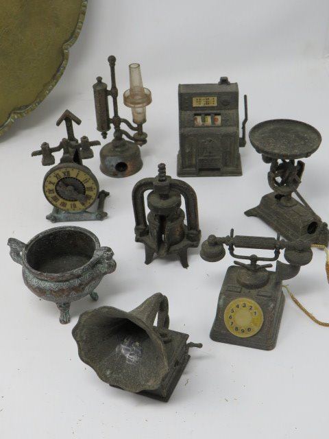 15 PCS VINTAGE CAST PENCIL SHARPENERS W/BRASS TRAY