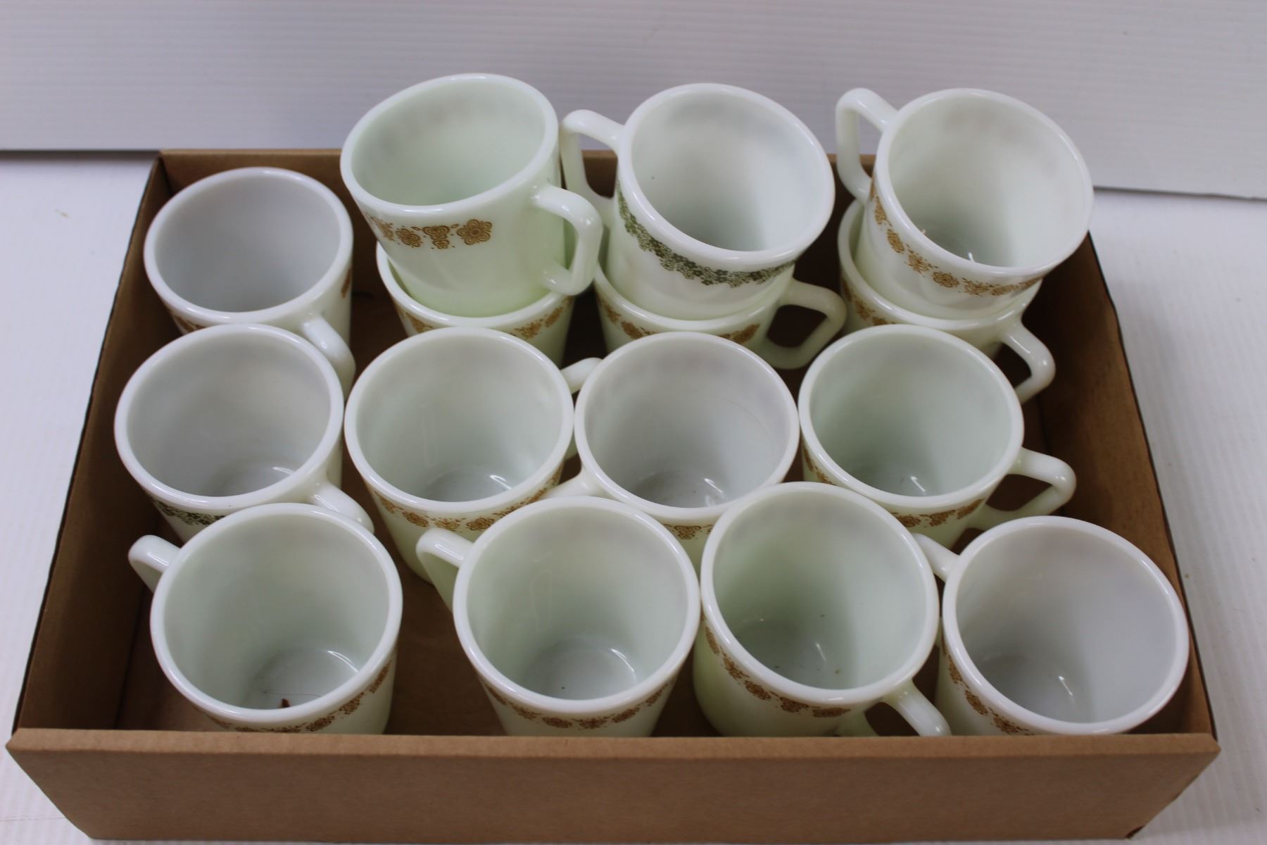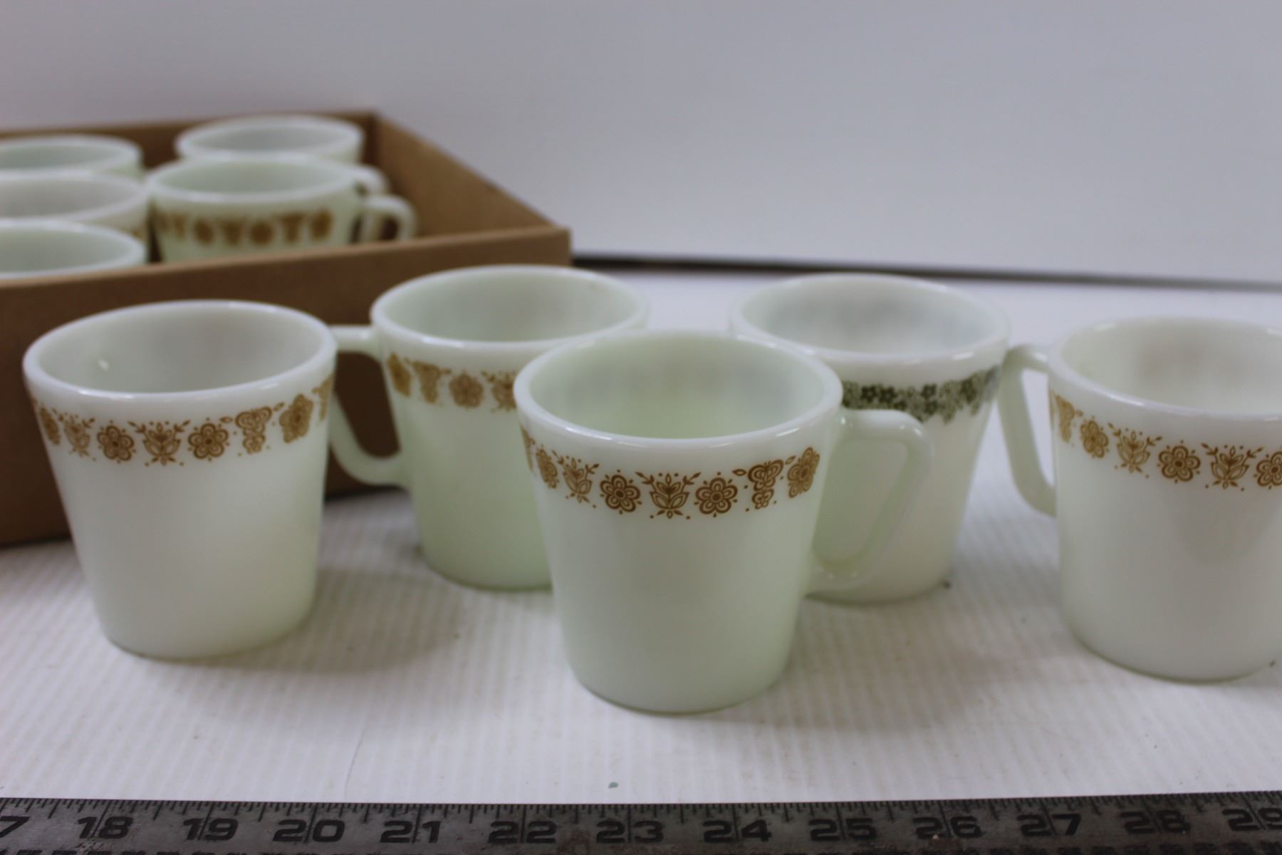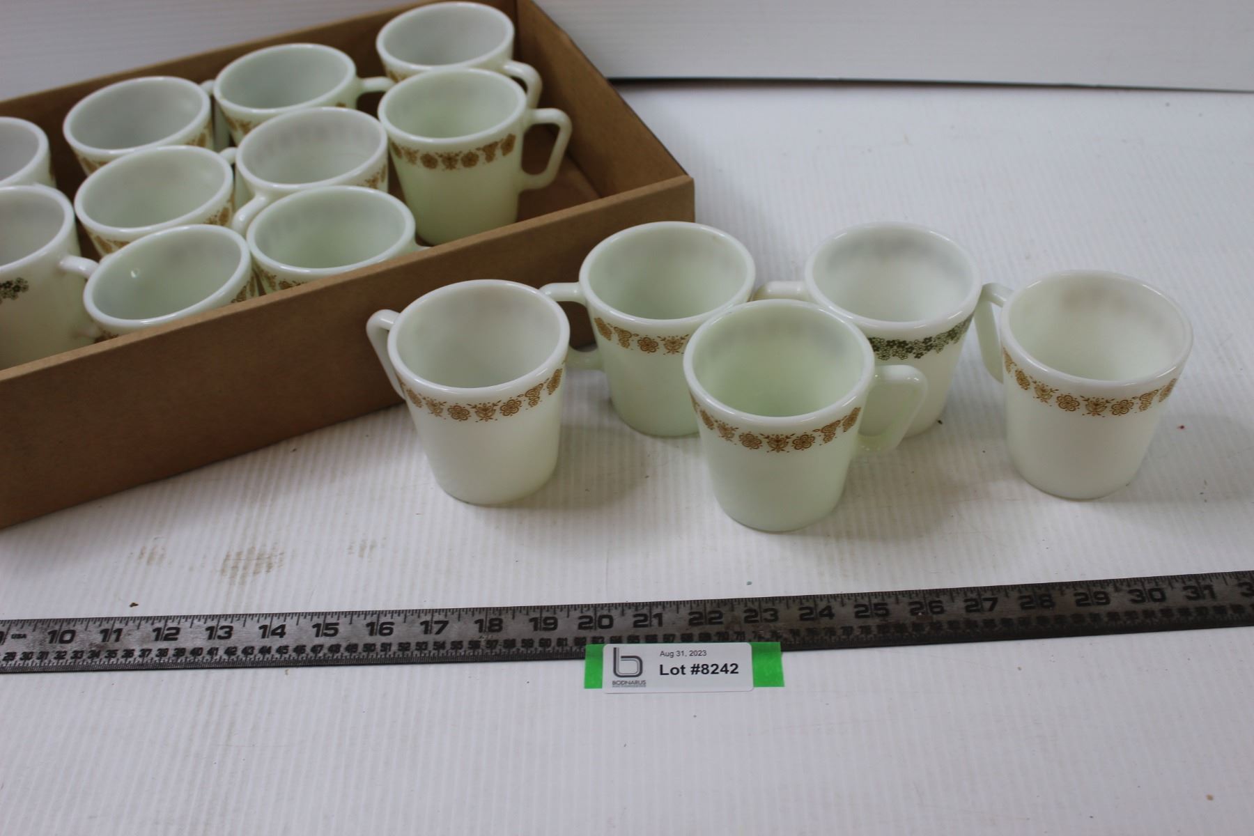 (15) Pyrex Coffee Mugs -- Butterfly Gold and Crazy Daisy Green