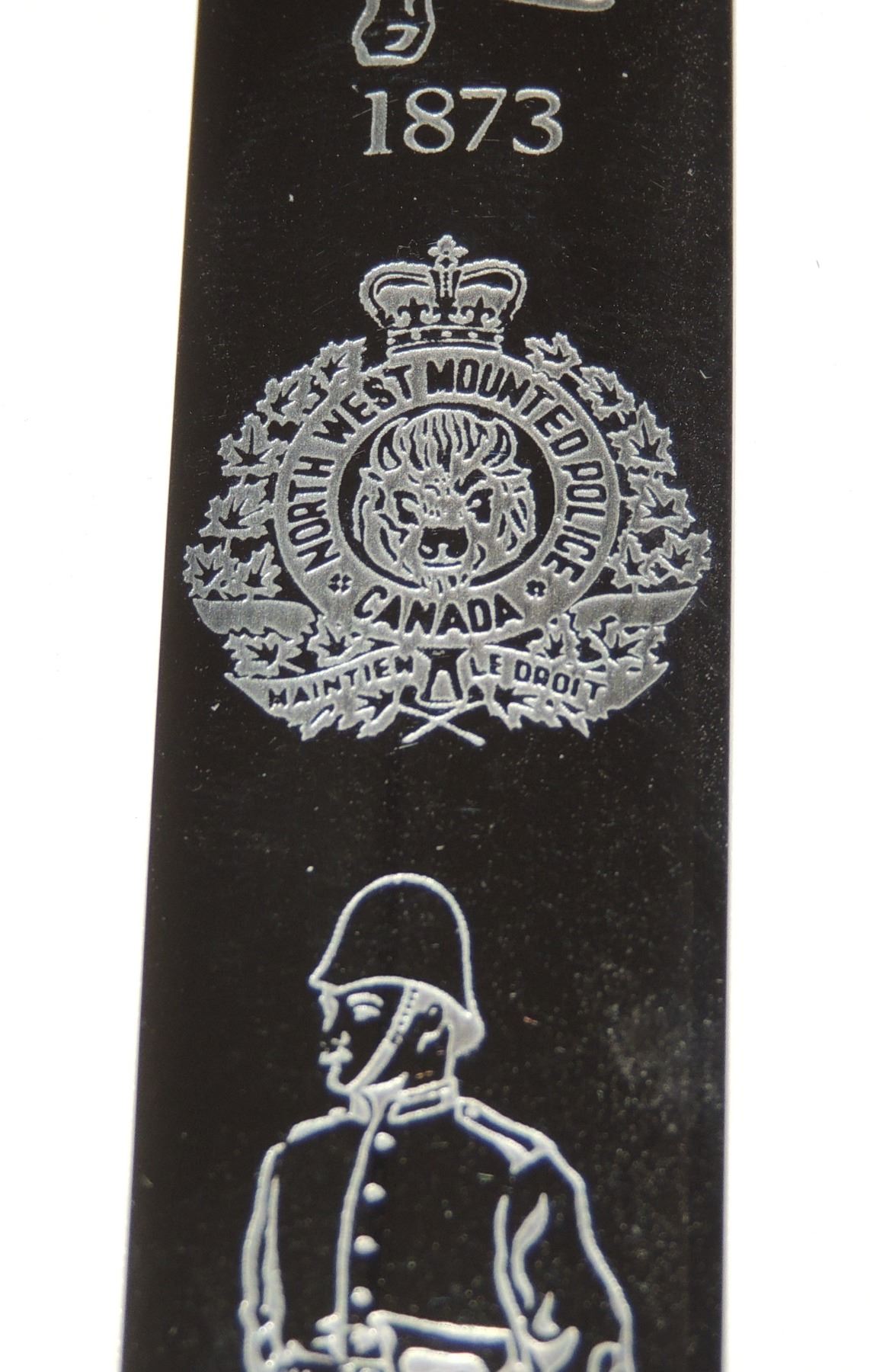 OFFERED TO MEMBERS ONLY IN 1980 NGRAVED BLADE WITH NWMP RNWMP RCMP MEMBERS NUMBERED #423 QUEEN ELIZABETH II QEII CROWN COLLAR BADGE ON SWORD GUARD 35 INCHES LENGTH TOTAL WITH 28.5 INCH BLADE ROYAL CANADIAN MOUNTED POLICE WILKINSON MADE IN ENGLAND