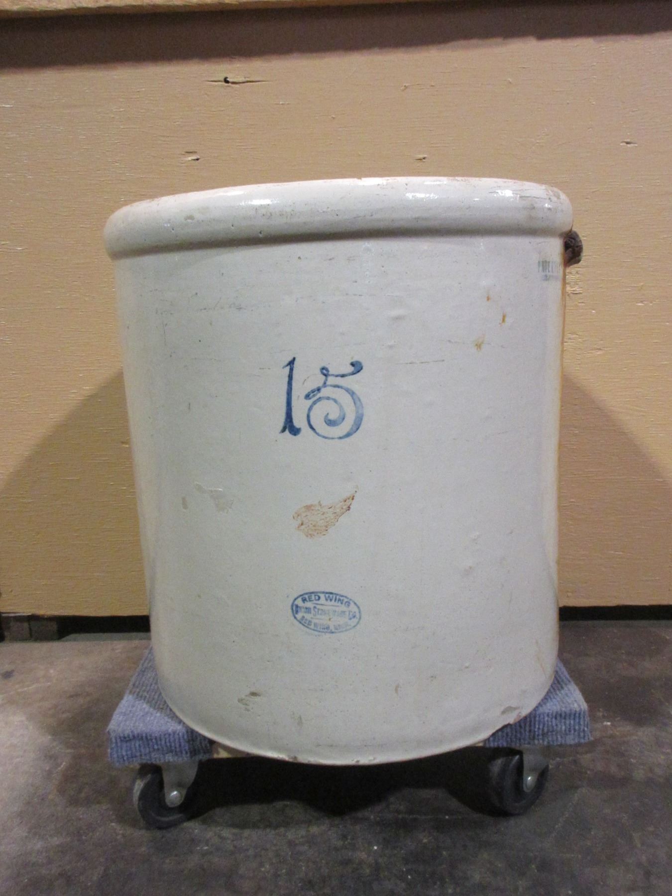 #15 Redwing Crock- Small Wing- Missing Handles- Stain On Outside- Few Chips On Bottom- 19"H X 17"W