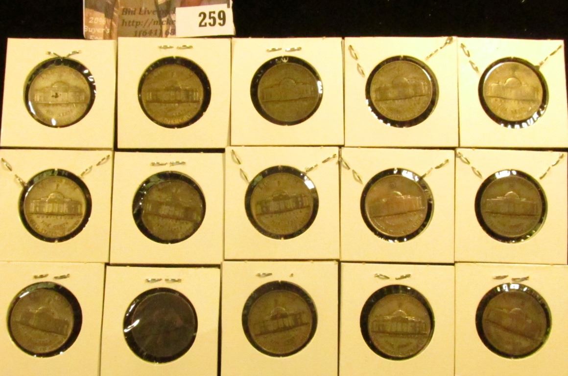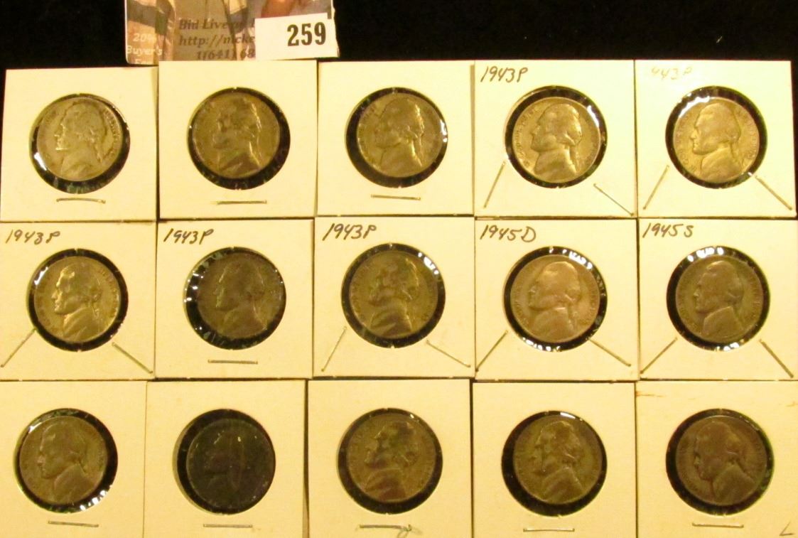 (15) Silver World War II Jefferson Nickels. Circulated.