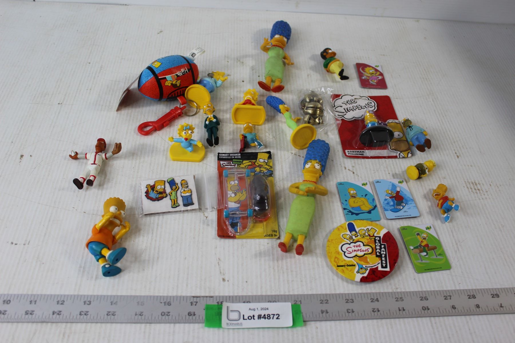 (15) Simpsons Figurines, Key Chain, (4) Pins, Assorted Simpsons Collectables
