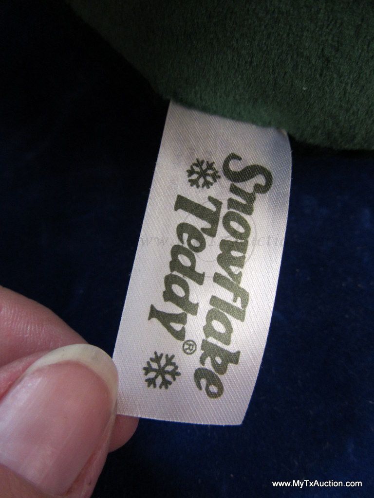 Snowflake Teddy made by Dan Dee Collector's Choice is in like new condition. He all decked out in holiday green and red. Green velvet pants, warm red jacket & matching winter cap trimmed in artificial lambs wool.