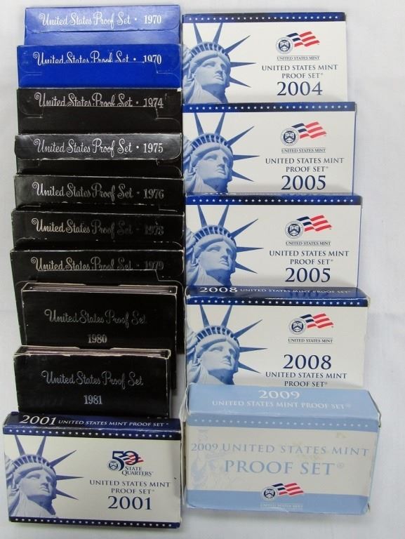 15- US PROOF SETS: 2- 1970'S, 1974, 1975, 1976, 19