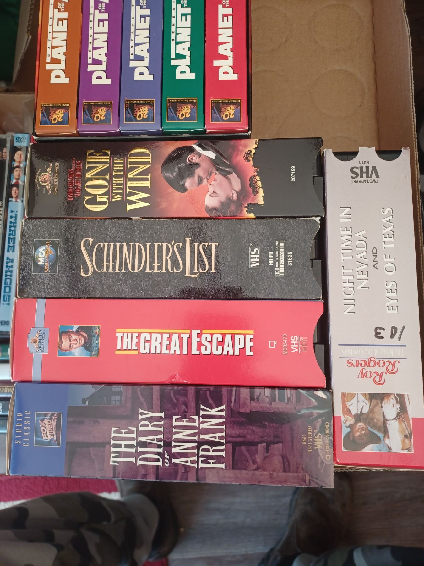 15 VHS : GONE WITH THE WIND, PLANET OF THE APES, THE GREAT ESCAPE, ANNE FRANK, RODGERS