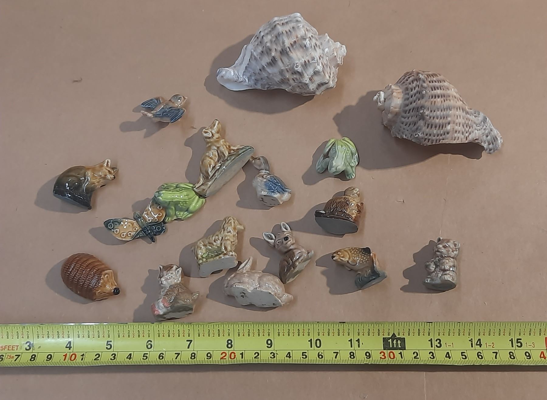 (15) Wade Figures and Vintage Natural Conch Shell.
