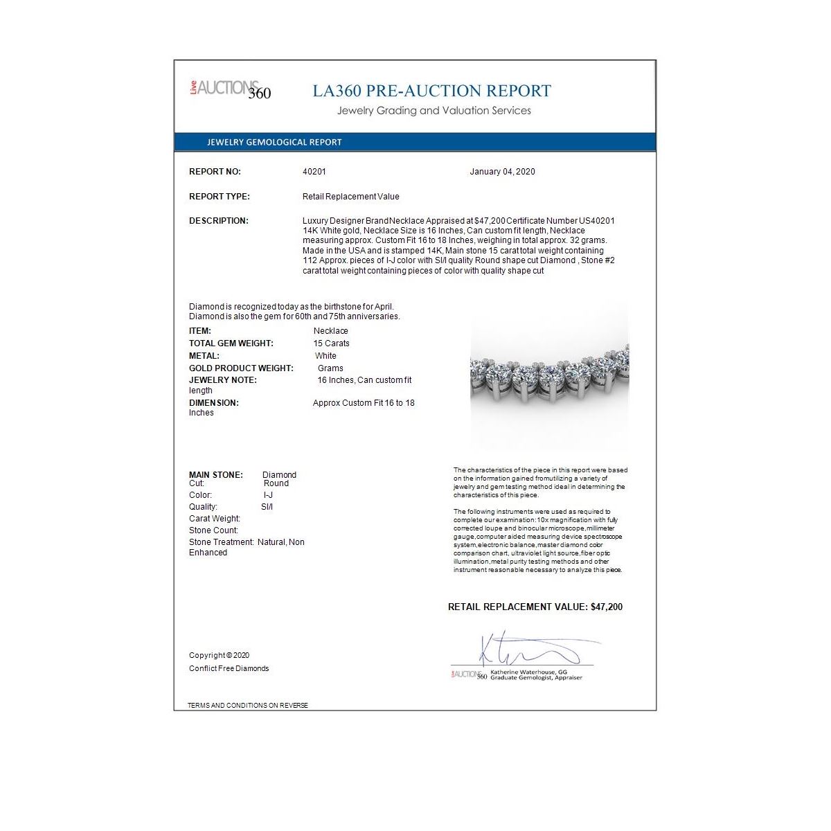 REF-804M5G - SKU: 40201 ---- 15 ctw 3 Prong Diamond Riviera Necklace 14K White Gold