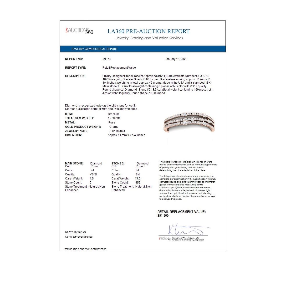REF-1110M2G - SKU: 39978 ---- 15 ctw Certified VS/SI Diamond Bracelet 18K Rose Gold