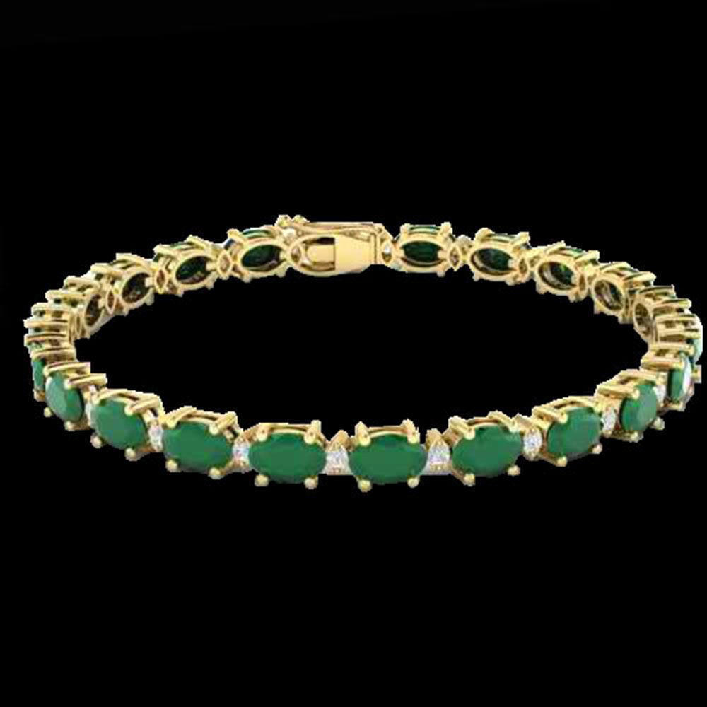 REF-122H8R - SKU: 21449 ---- 15 ctw Emerald & VS/SI Diamond Certified Eternity Bracelet 10k Yellow Gold