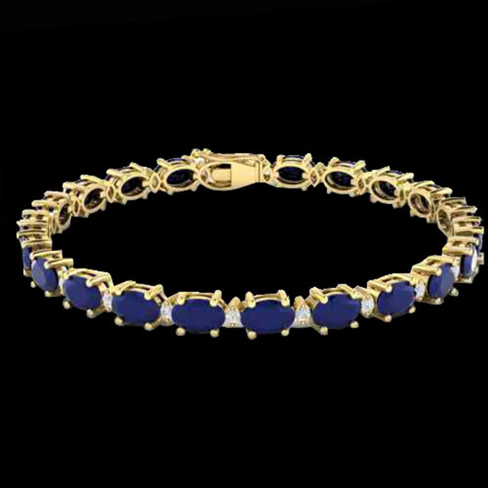 REF-122A8N - SKU: 21460 ---- 15 ctw Sapphire & VS/SI Diamond Eternity Bracelet 10k Yellow Gold