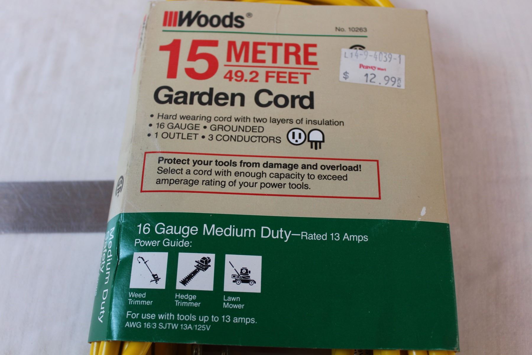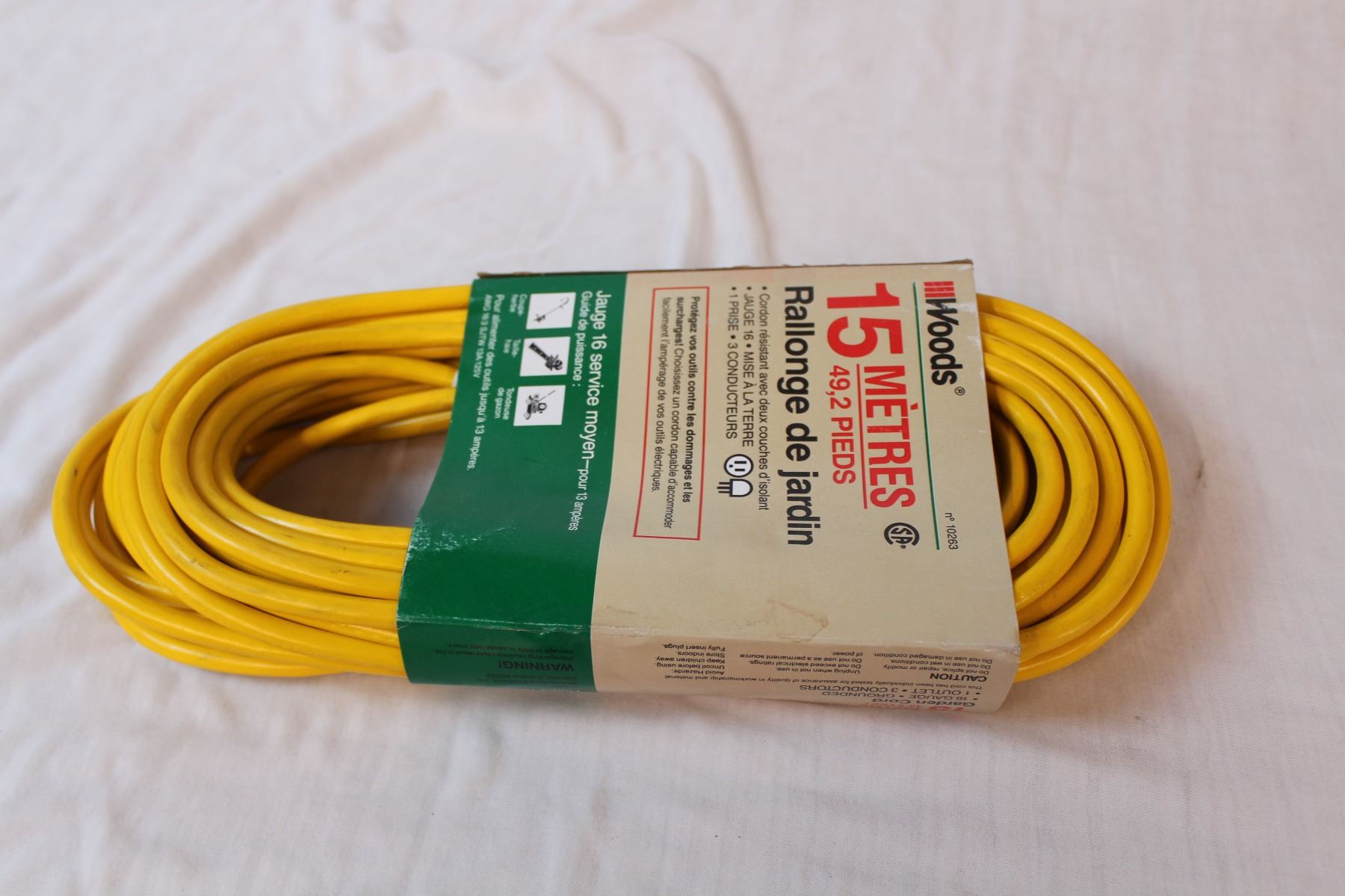 15 metre garden electrical cord, in packaging