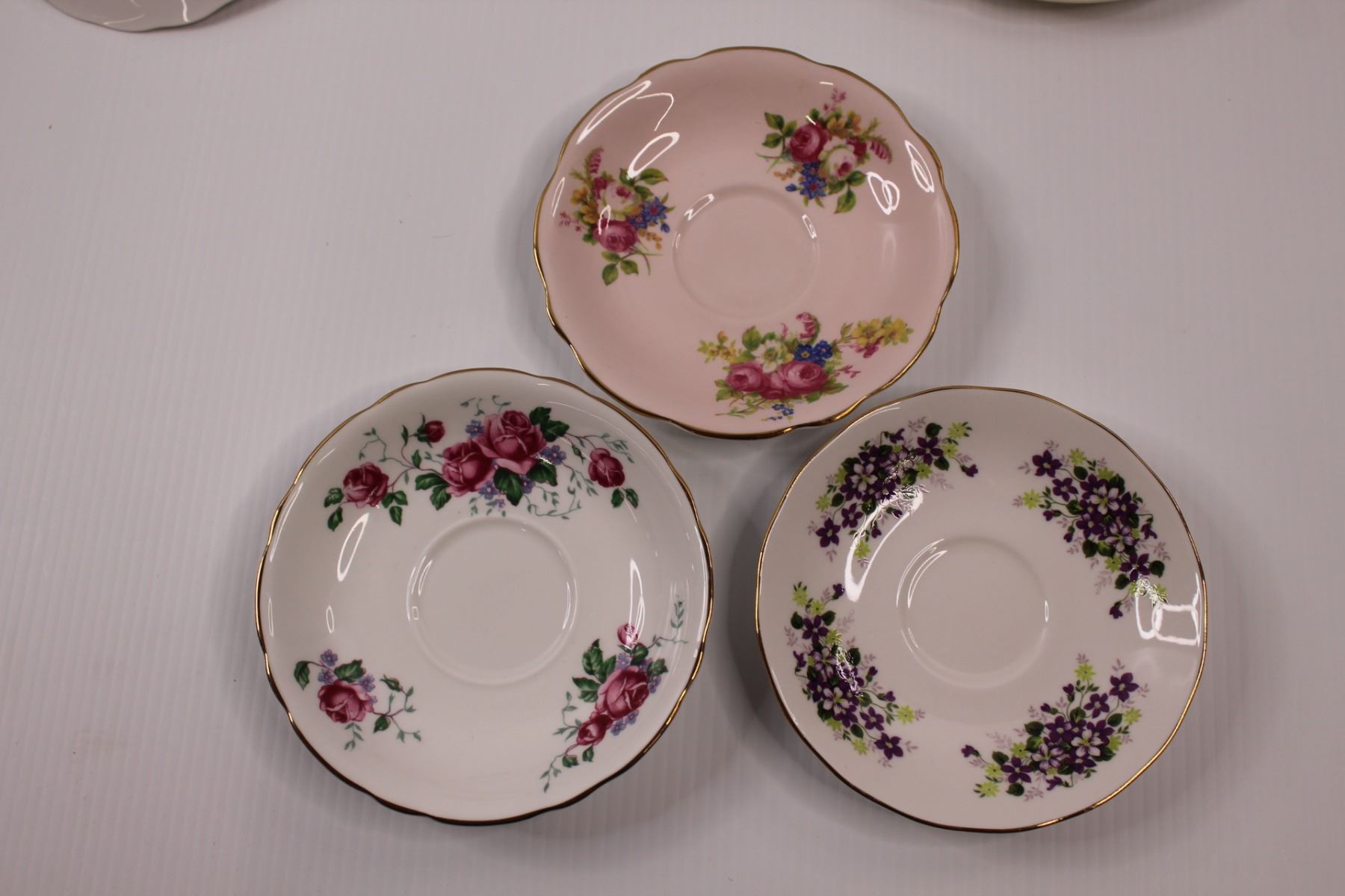 (15 pcs) Fine China of Various Makers (Saucers, Small/Medium Plates and Tea Cup) - Royal Albert, Royal Stafford, Tuscan, Royal Vale, Adderley, Queen Anne, Foley, Old Royal, Royal Doulton, Royal Grafton etc.