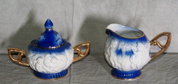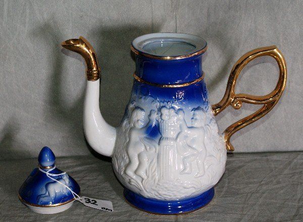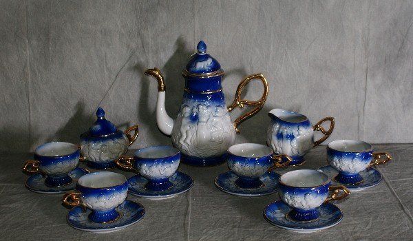 15 piece capodimonte style porcelain coffe set. Pot H:10.5" .