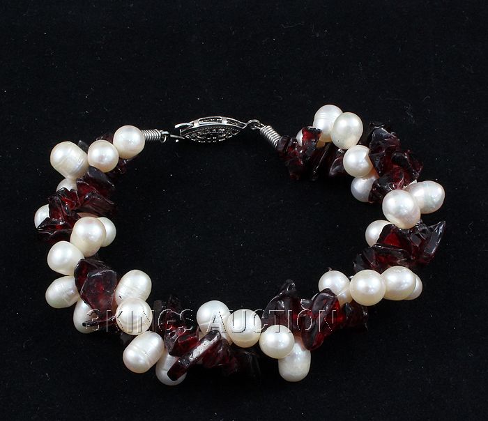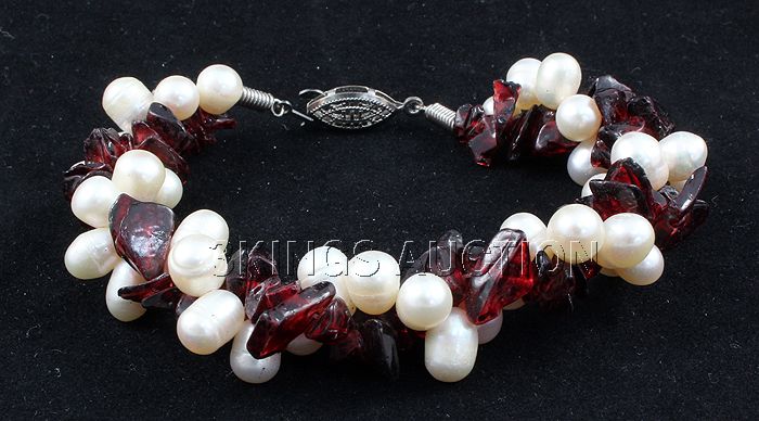 150.4CTW 8" RED-WHITE FRESHWATER PEARL AND CHIPPED STON **|**|** 150.4CTW 8" RED-WHITE FRESHWATER PEARL AND CHIPPED STONE BRACELET PHILIPPINES ; MSRP: $100