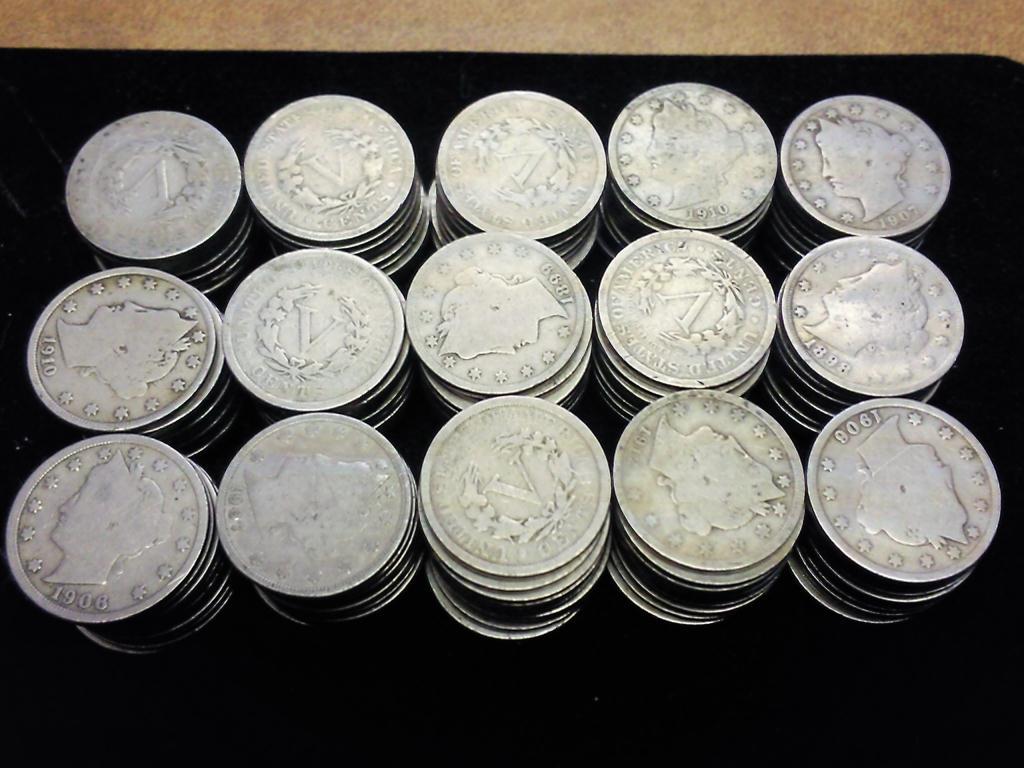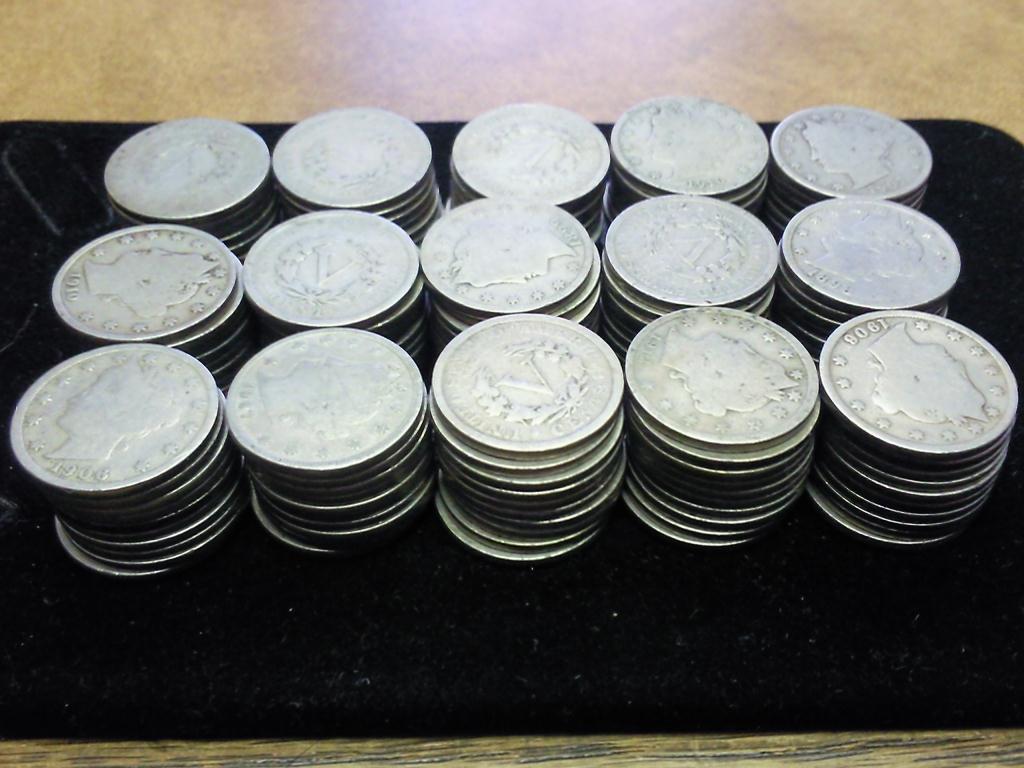 150 ASSORTED LIBERTY "V" NICKELS