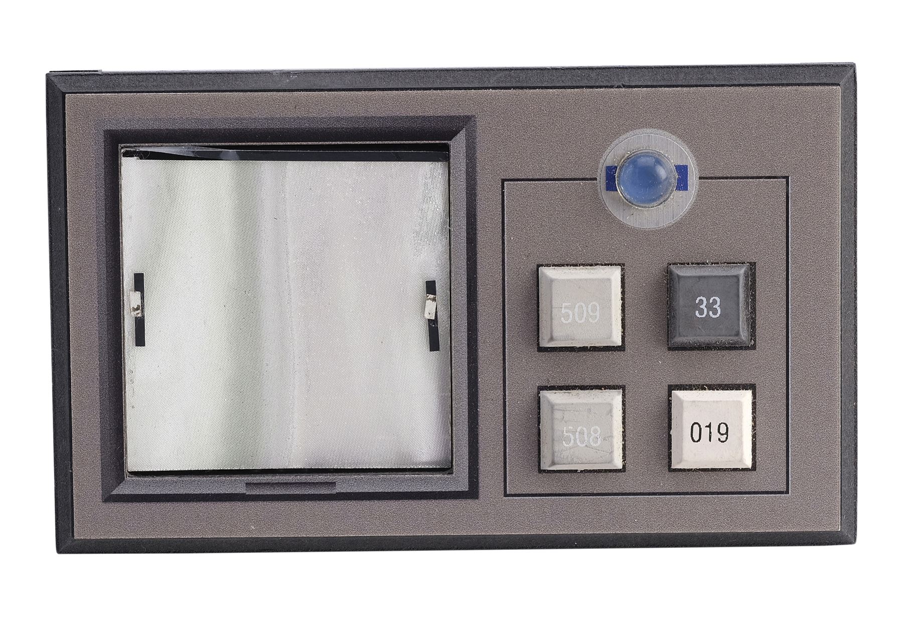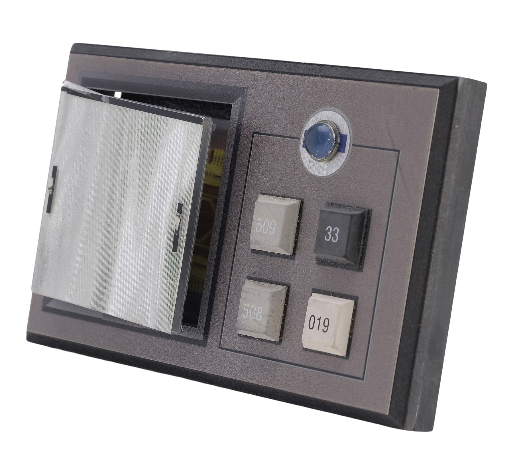 STAR TREK: ENTERPRISE (2001-2005) - Michael and Denise Okuda Collection: Enterprise NX-01 Intercom Console with Circuit Board - An Enterprise NX-01 intercom console with circuit board from the television series Star Trek: Enterprise. Intercoms appeared throughout the Enterprise alongside doors and other control panels.