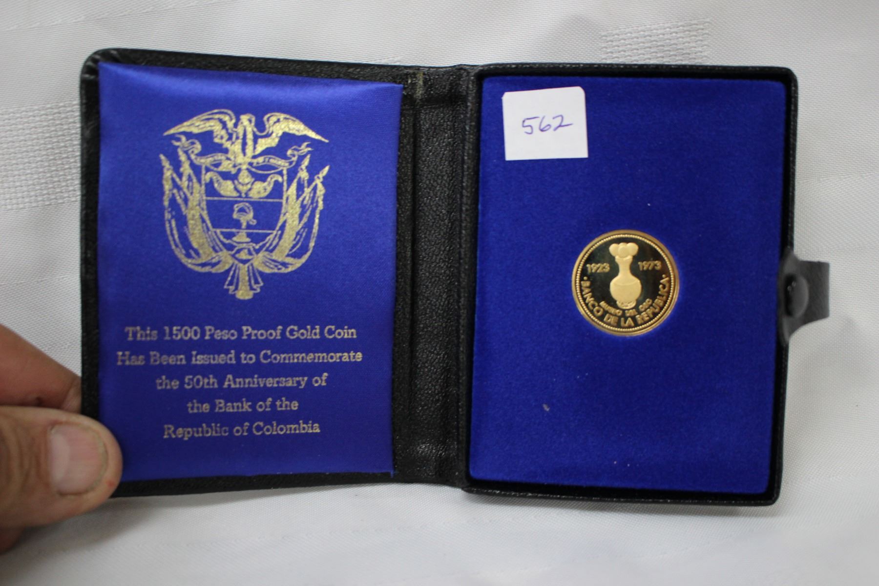 1500 Peso Proof Gold Coin - Issued to Commemorate the 50th Anniversary of the Bk of the Republic of Columbia - in a Case w/Orig. Box