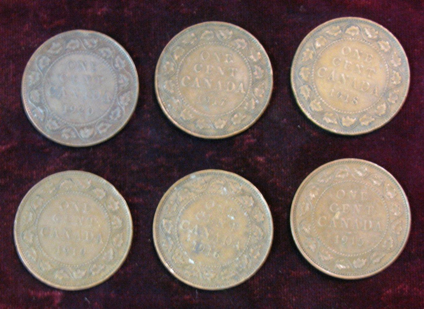 1501. 1915-20 Complete Set of Canada Large Cents. VG-F.