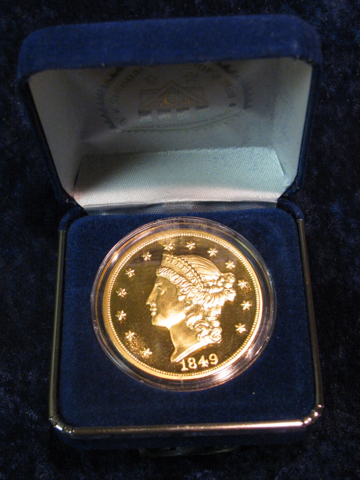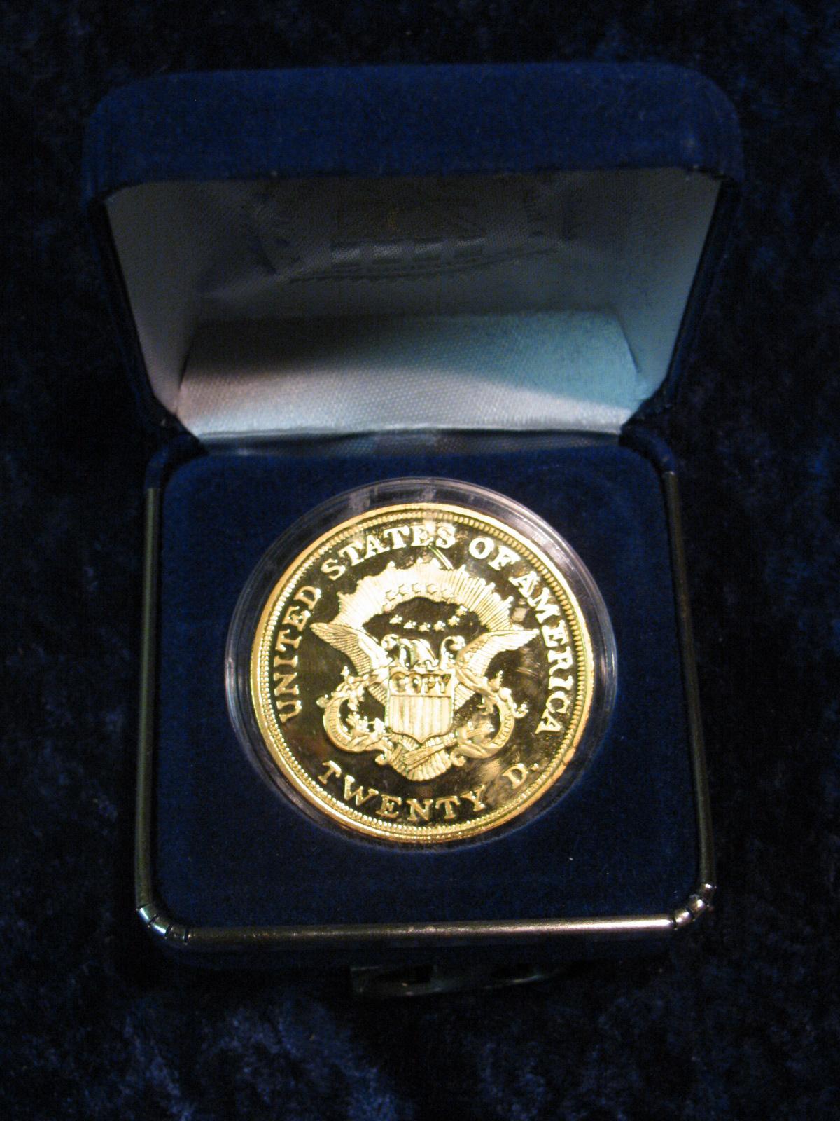 1502. 1849 U.S. Proof $20 Gold Coin Copy ,In Display Case, BY National Collectors Mint.