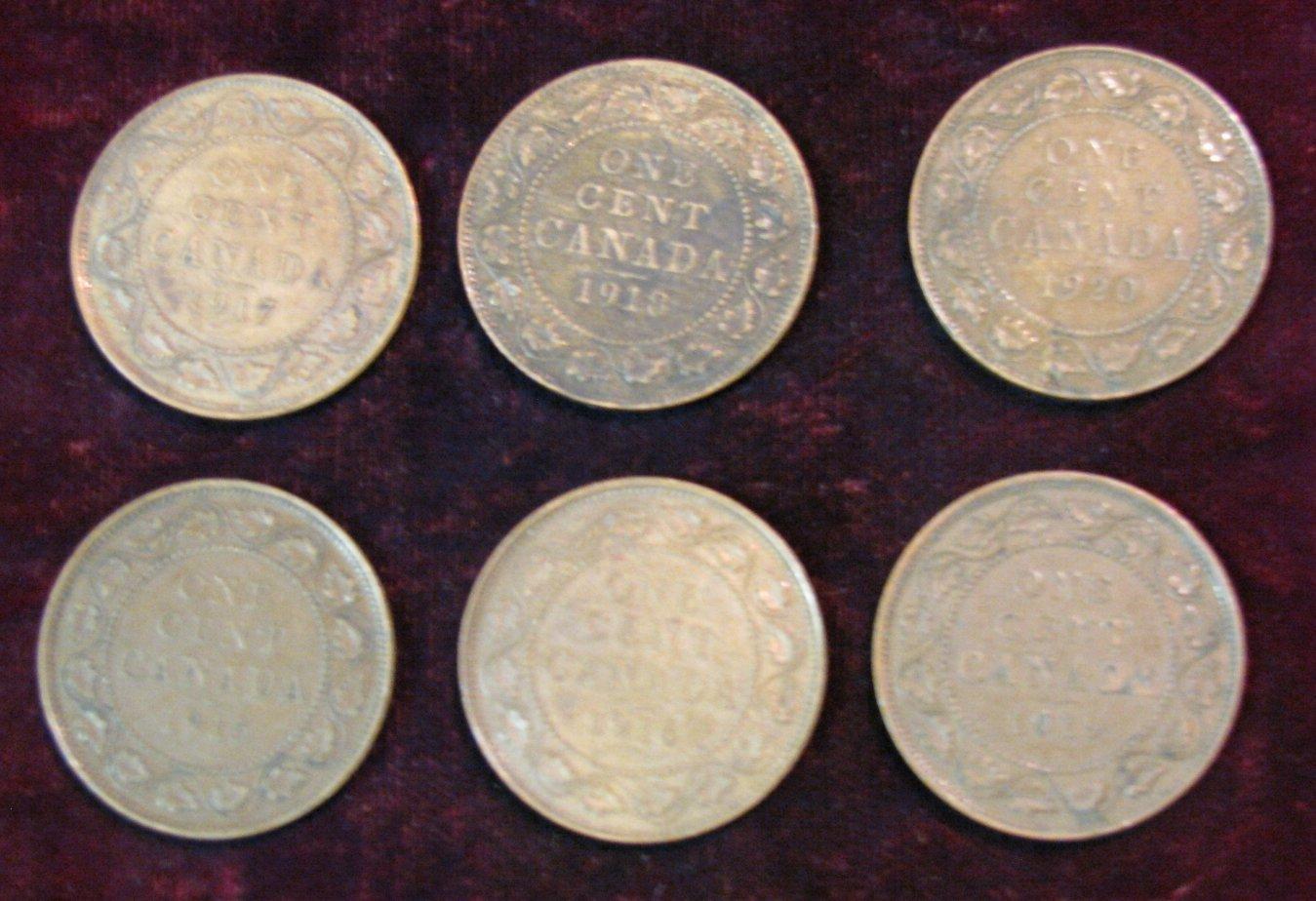 1502. 1915-20 Complete Set of Canada Large Cents. VG-F.