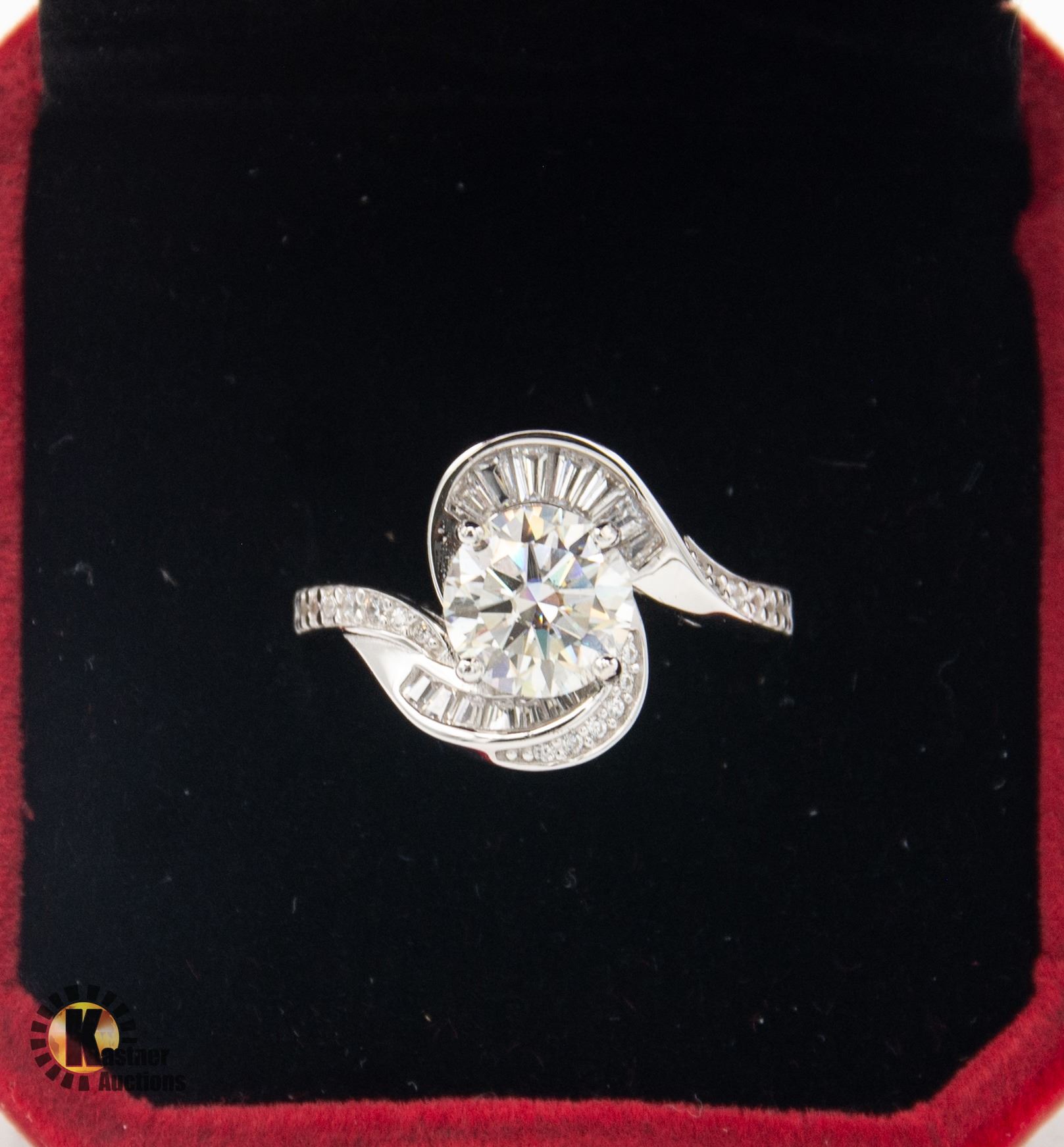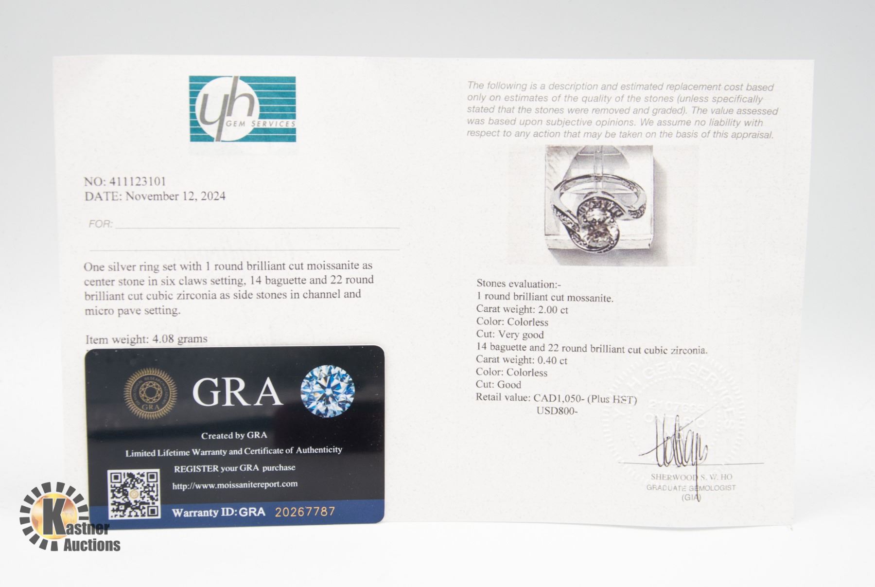 MOISSANITE STONE VVS D COLOR WITH 14 BAGUETTE AND 22 ROUND BRILLIANT CUBIC ZIRCONIA WEIGHING A TOTAL 0.40 CT SET IN 925 SILVER RING SIZE 7
