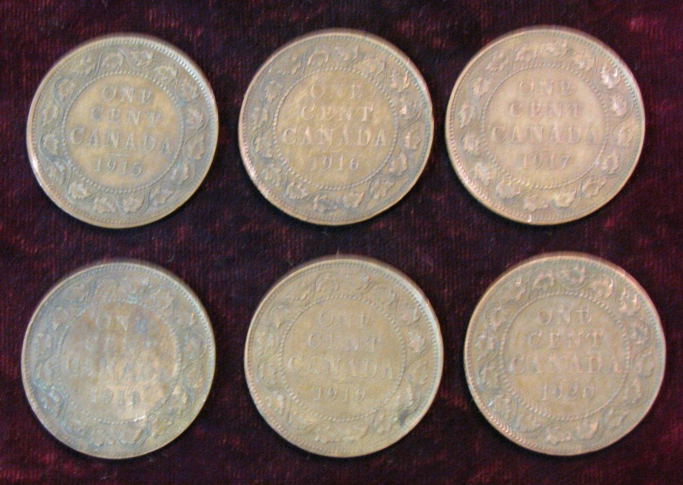 1503. 1915-20 Complete Set of Canada Large Cents. VG-F.