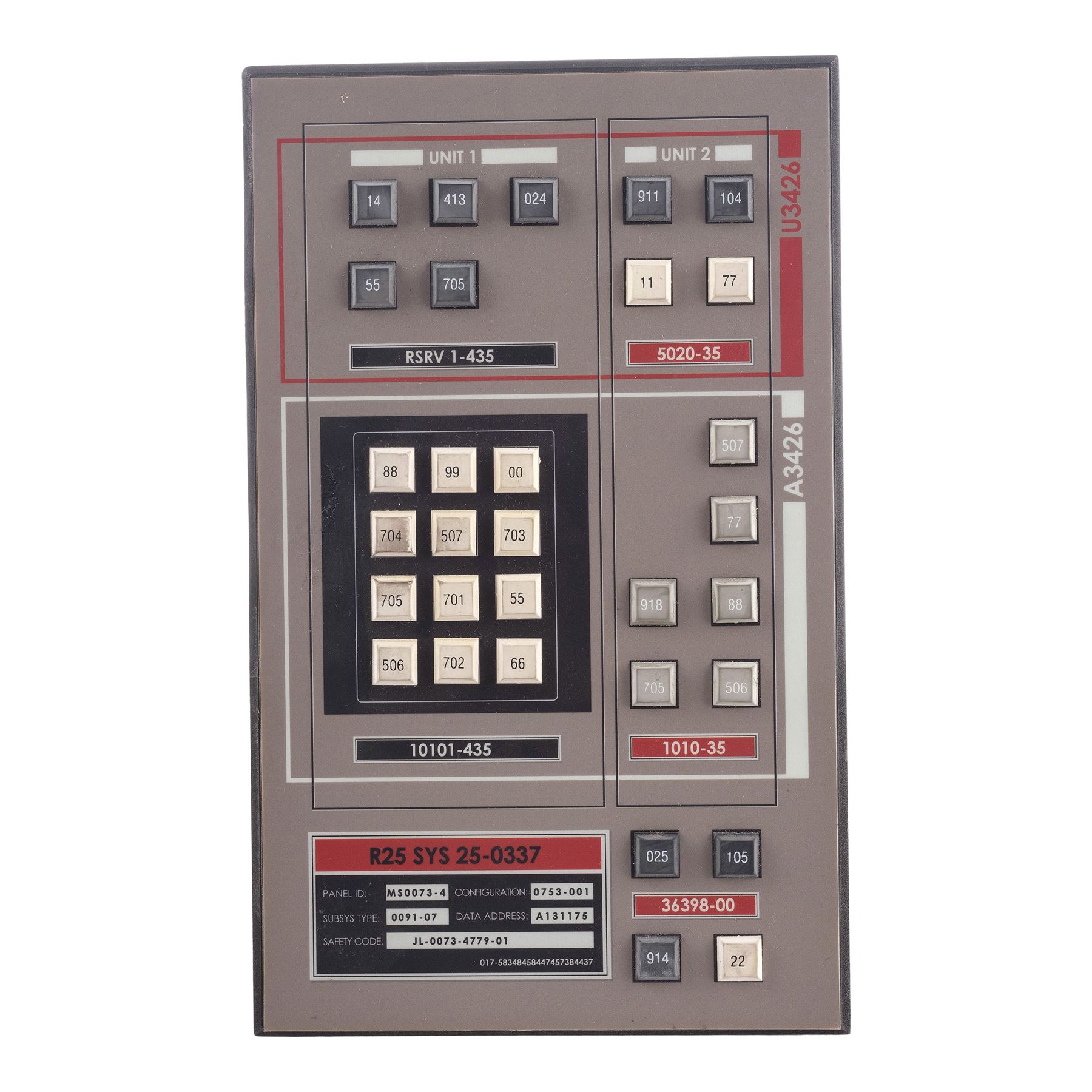 This lot comes from the collection of celebrated Star Trek franchise artists and advisors Michael and Denise Okuda. This panel is made of black acrylic and features a printed gray graphic layout adhered to one side with red and white embellishments and labeling, and numbered rubber buttons attached throughout. The panel exhibits scuffing and staining. Dimensions: (largest) 6.75" x 11.25" x 0.5" (17 cm x 28.5 cm x 1.5 cm)Though their long and celebrated careers in the Star Trek world began in features, Michael and Denise Okuda established themselves as franchise legends while working on Star Trek: The Next Generation. Michael became art supervisor on TNG, while Denise came on as a scenic artist during Deep Space Nine, roles they would continue to perform through Voyager, Enterprise, and the Next Generation films. Married in 1993, the Okudas are known as the driving forces behind the development of many of the now-iconic 24th-century technologies seen throughout the series, including the famous "Okudagrams" they created for the LCARS (Library Computer Access and Retrieval System) interfaces . Propstore is proud to present a selection of key memorabilia from the personal collection of one of the franchise's most important creative teams to the public for the first time.