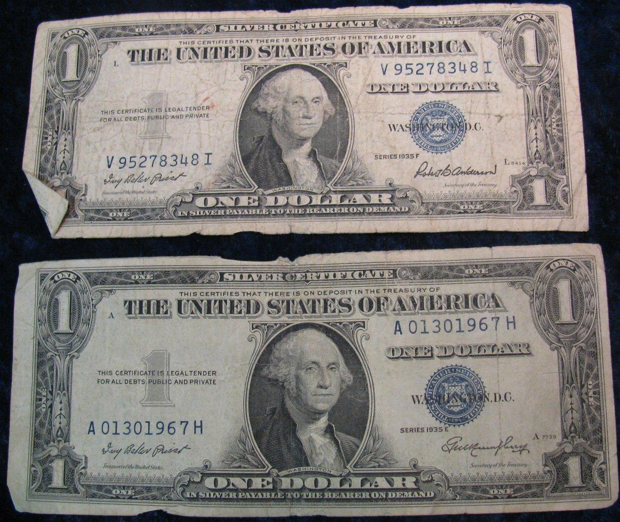 1503. Series 1935 E & F $1.00 Silver Certificates. Circulated.