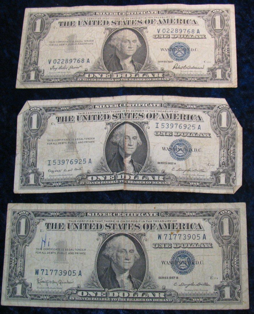 1504. Series 1957, 57A, & 57B $1.00 Silver Certificates. Circulated.
