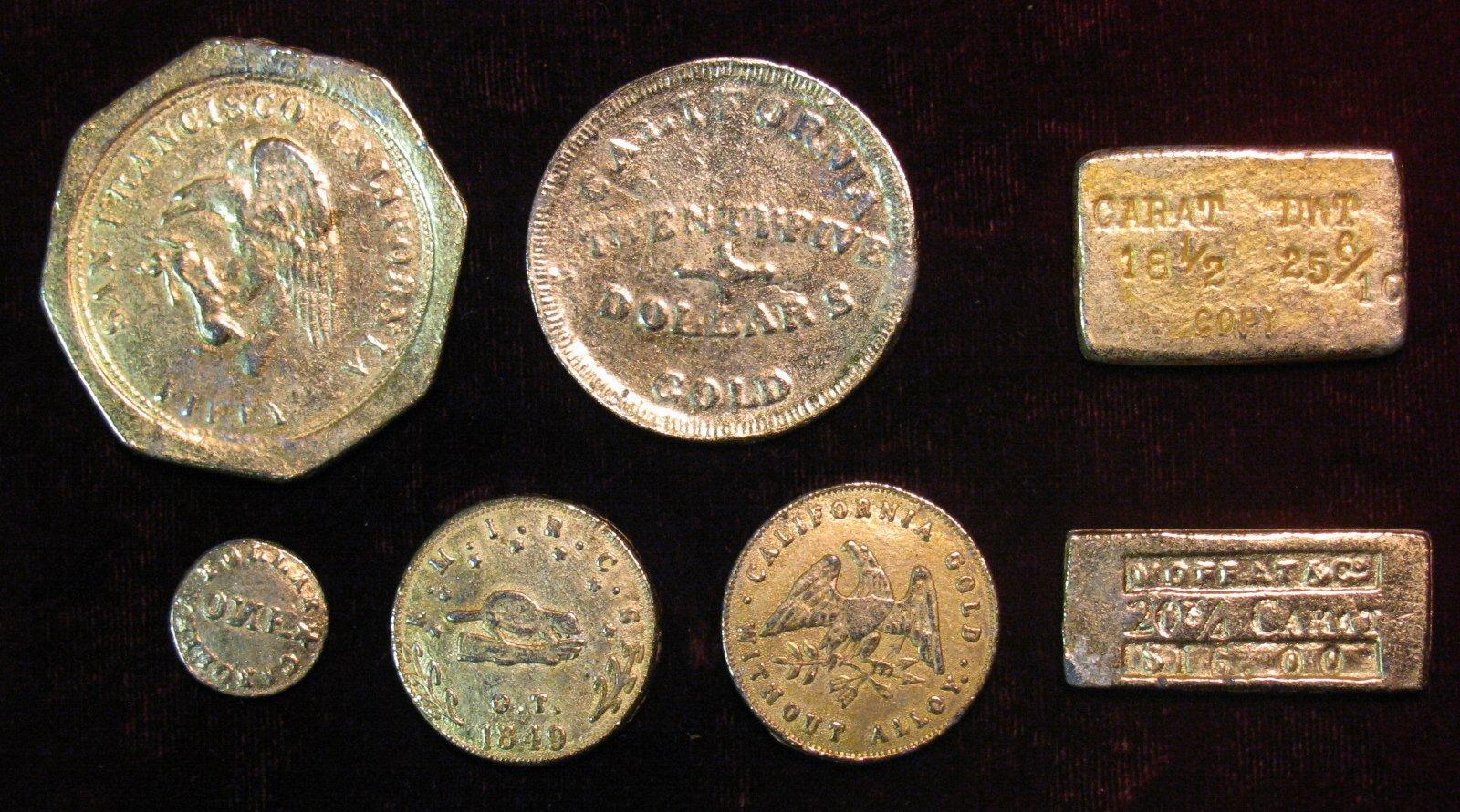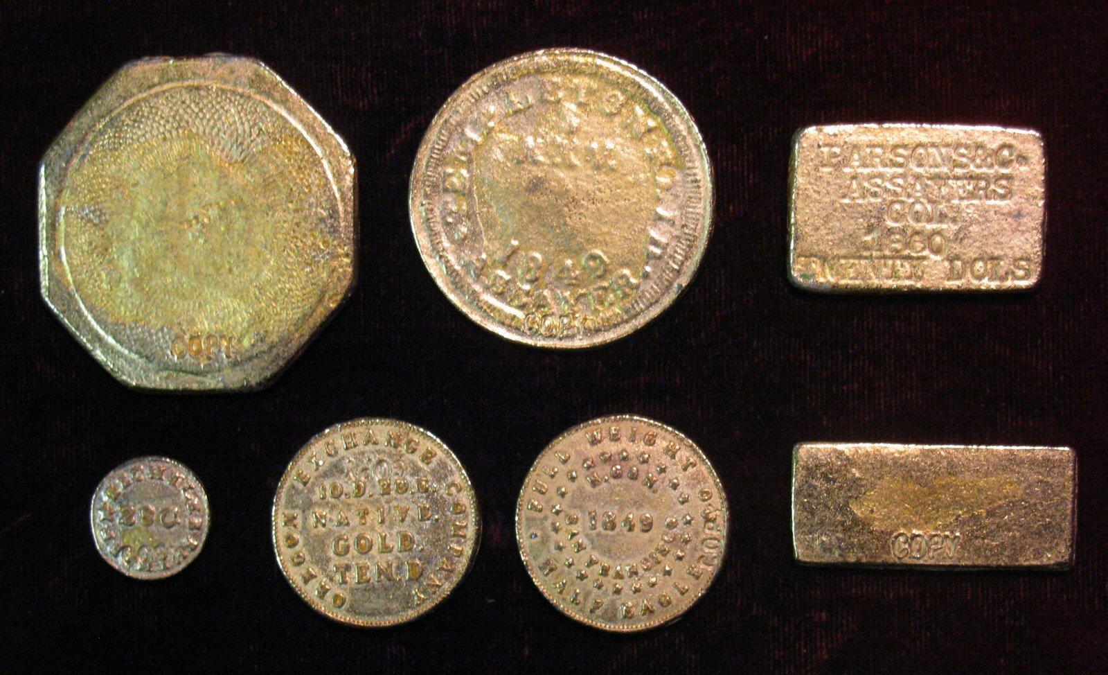 1506. U.S. Territorial Gold Token Set, 7 Assorted Replica Coins/Bars