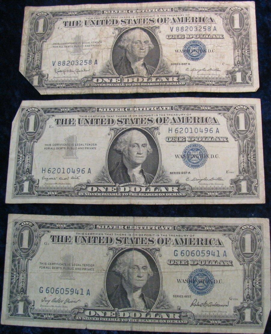 1507. Series 1957, 57A, & 57B $1.00 Silver Certificates. Circulated.