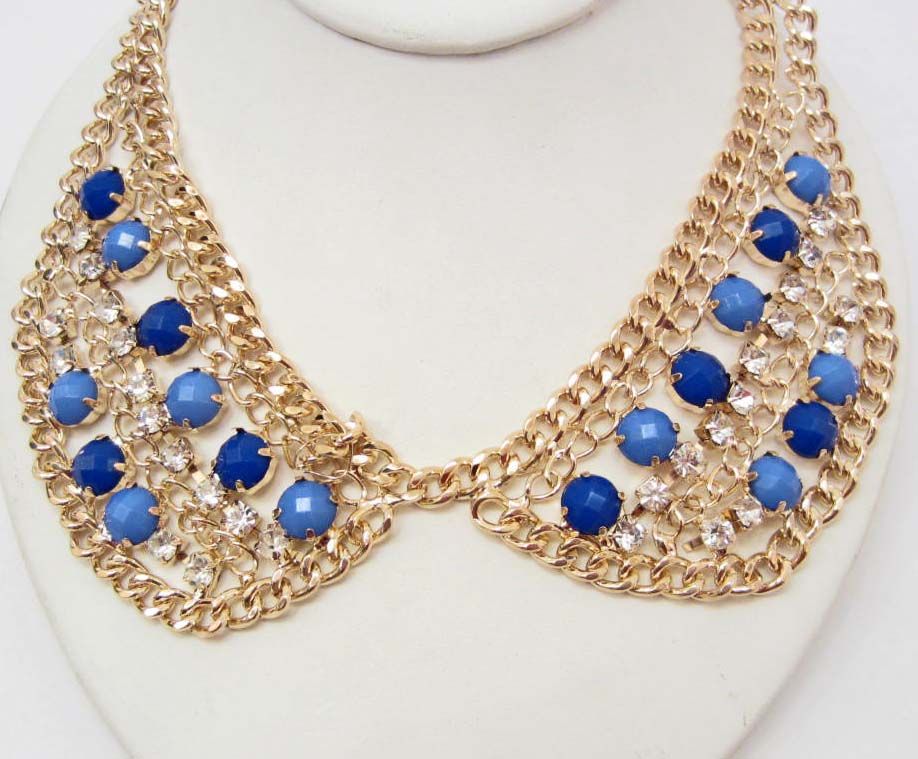 15076 - BLUE RHINESTONE DOUBLE COLLAR NECKLACE