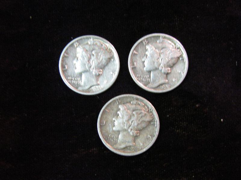 1508. 1927 EF, 29S VF & 41S EF, Mercury Dimes.