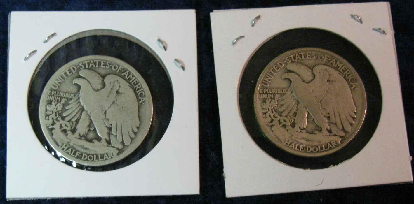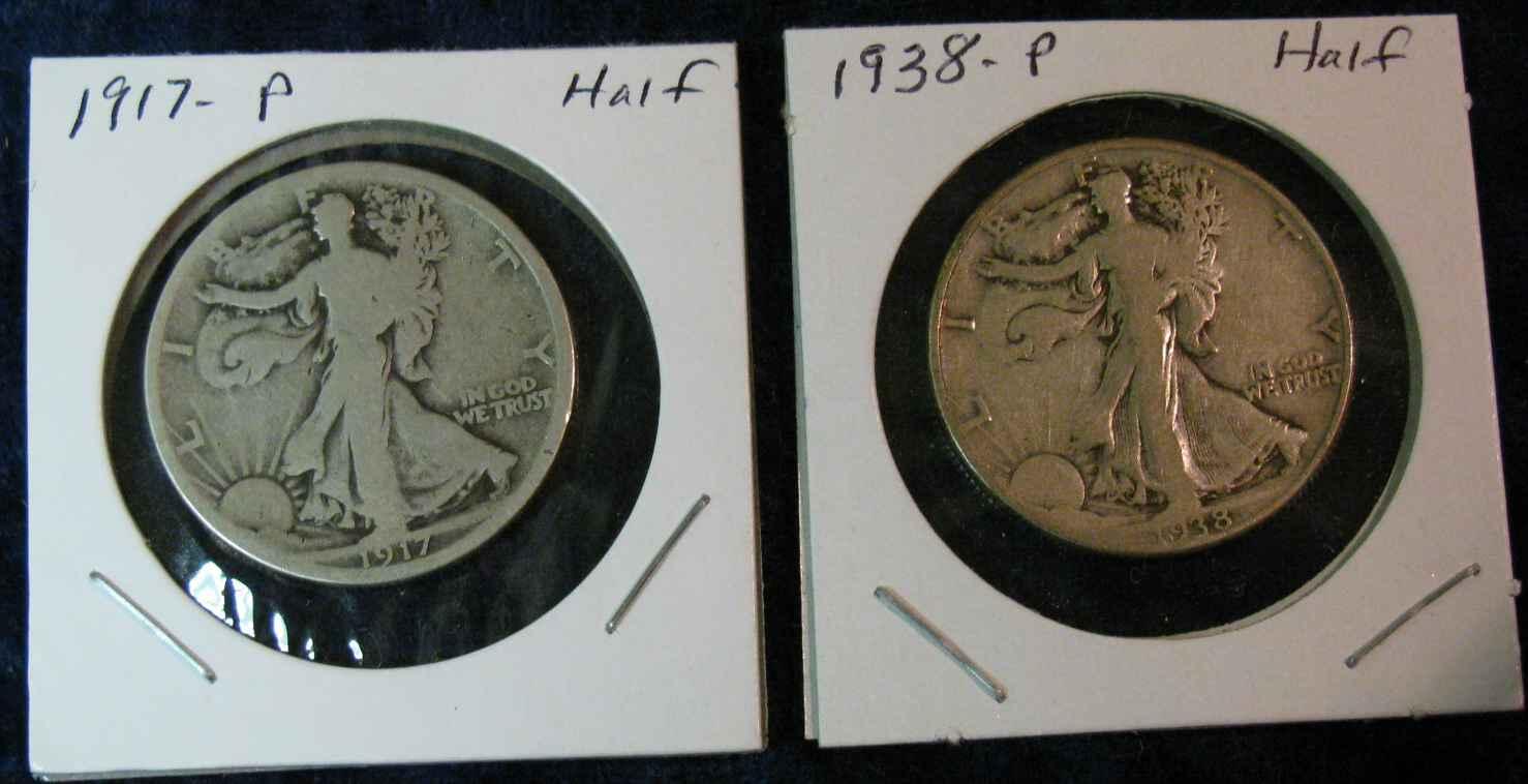 1509. 1917P G & 1938P F Walking Liberty Halves.